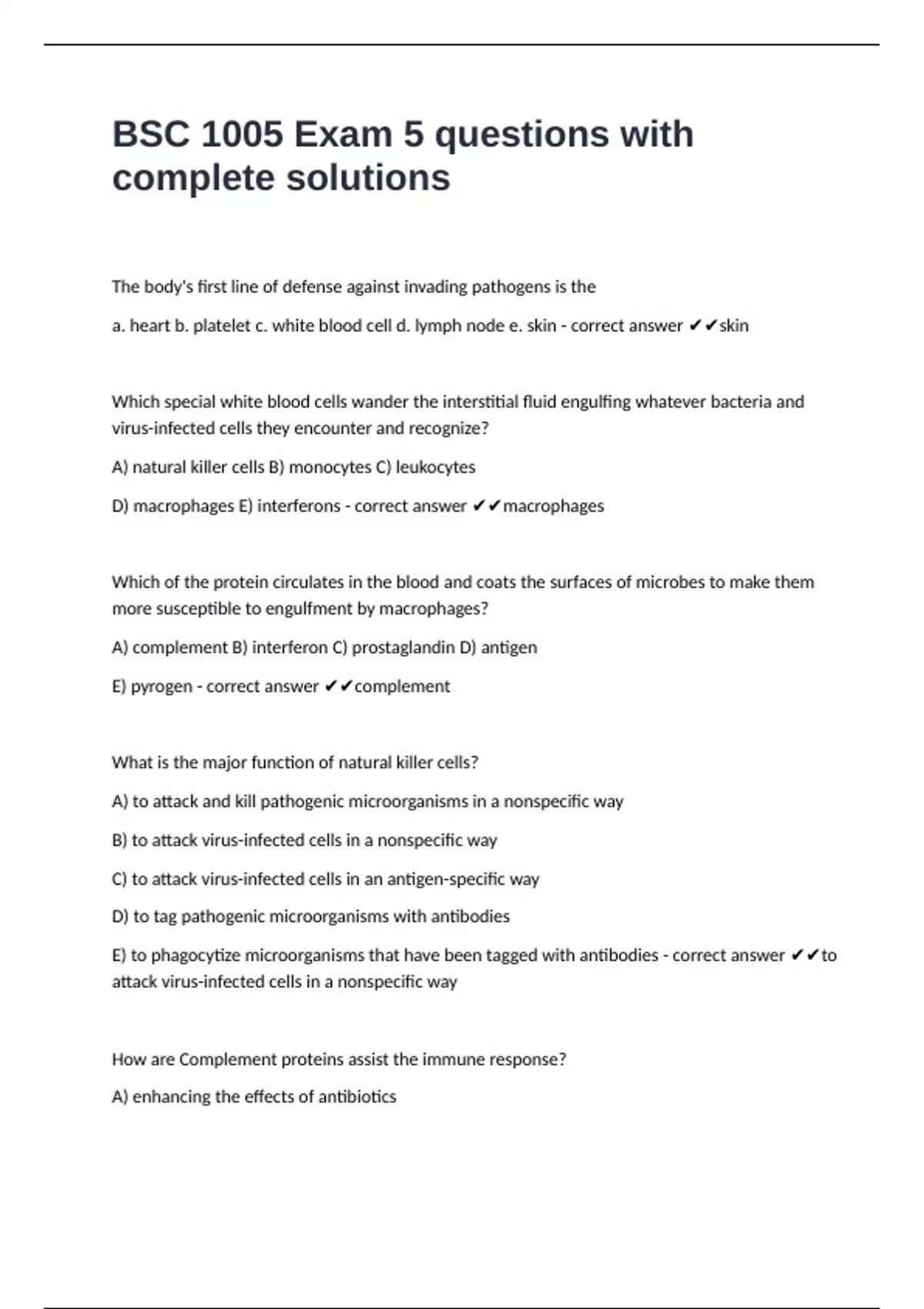 E) pyrogen - correct answer ✔✔complement