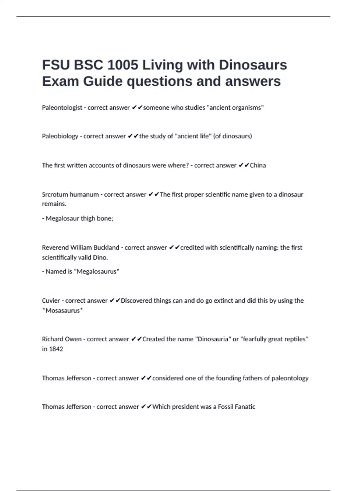 Paleobiology - correct answer ✔✔the study of "ancient life" (of dinosaurs)