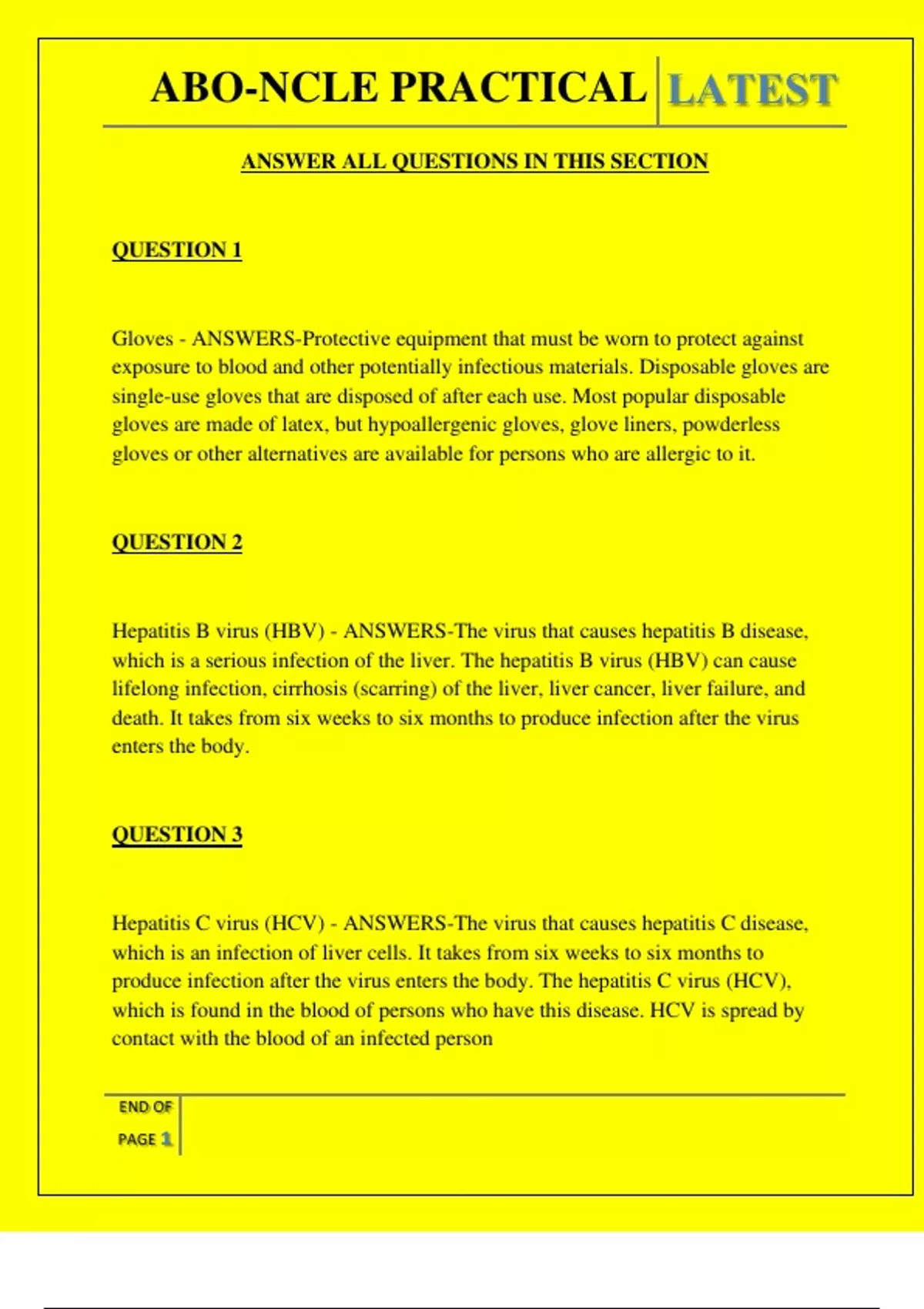 , ABO-NCLE PRACTICAL LATEST