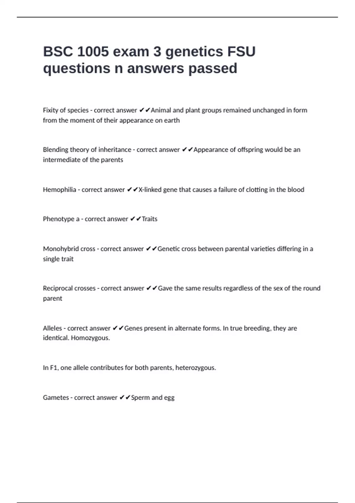 Blending theory of inheritance - correct answer ✔✔Appearance of offspring would be an