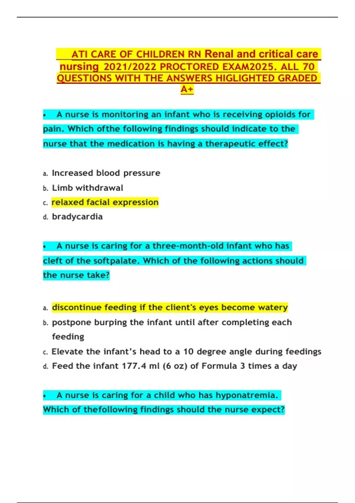 QUESTIONS WITH THE ANSWERS HIGLIGHTED GRADED