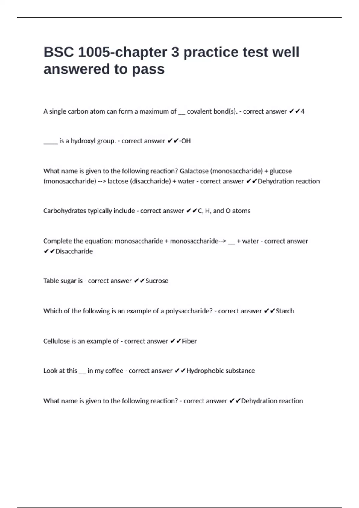 Carbohydrates typically include - correct answer ✔✔C, H, and O atoms