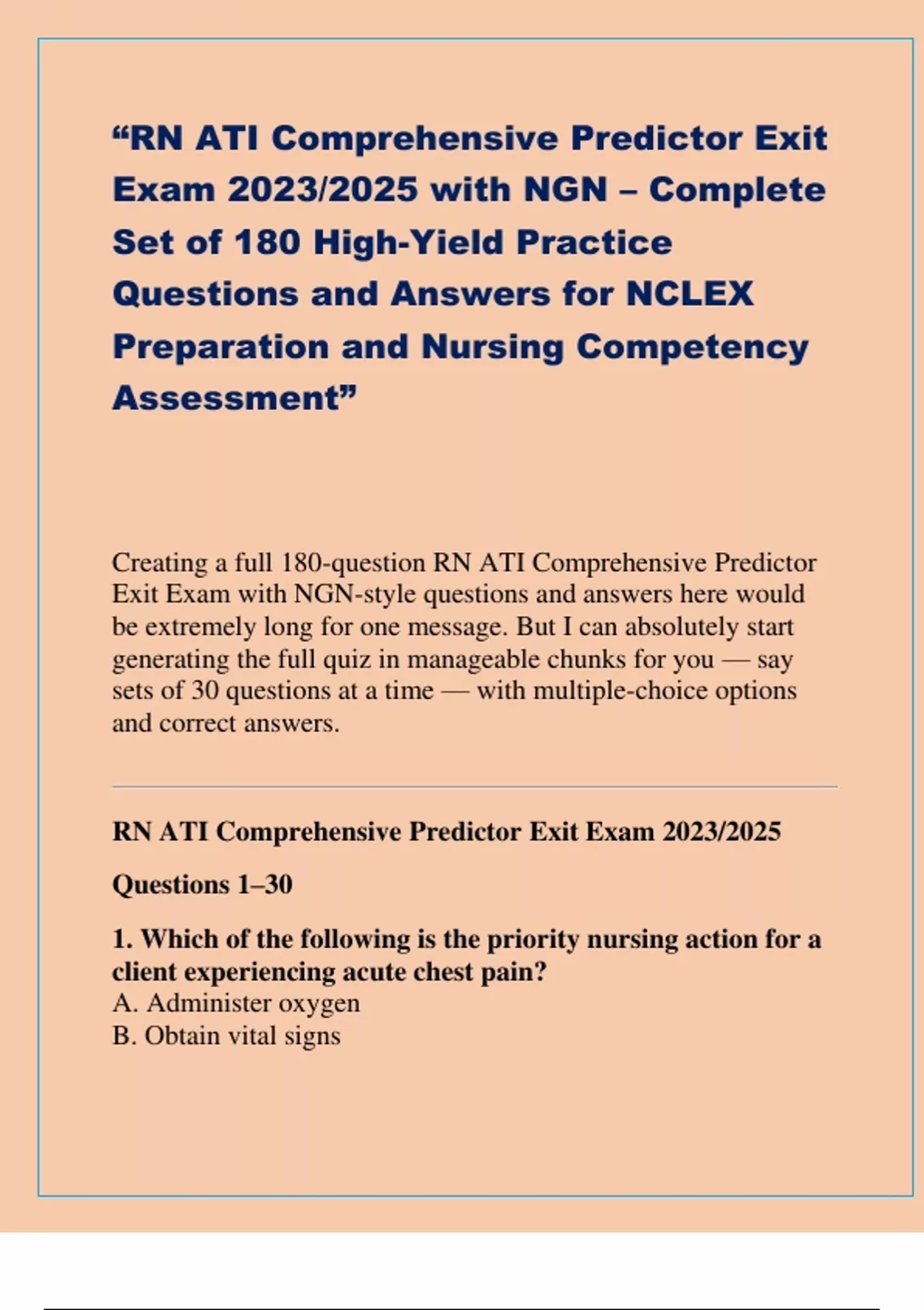 Creating a full 180-question RN ATI Comprehensive Predictor