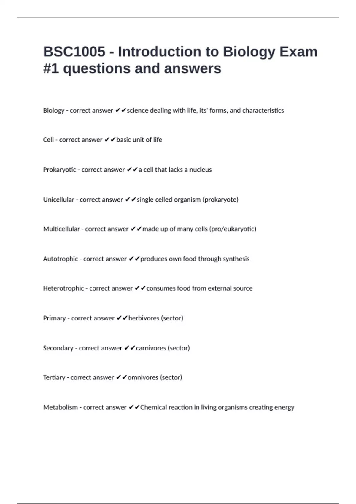 Biology - correct answer ✔✔science dealing with life, its' forms, and characteristics