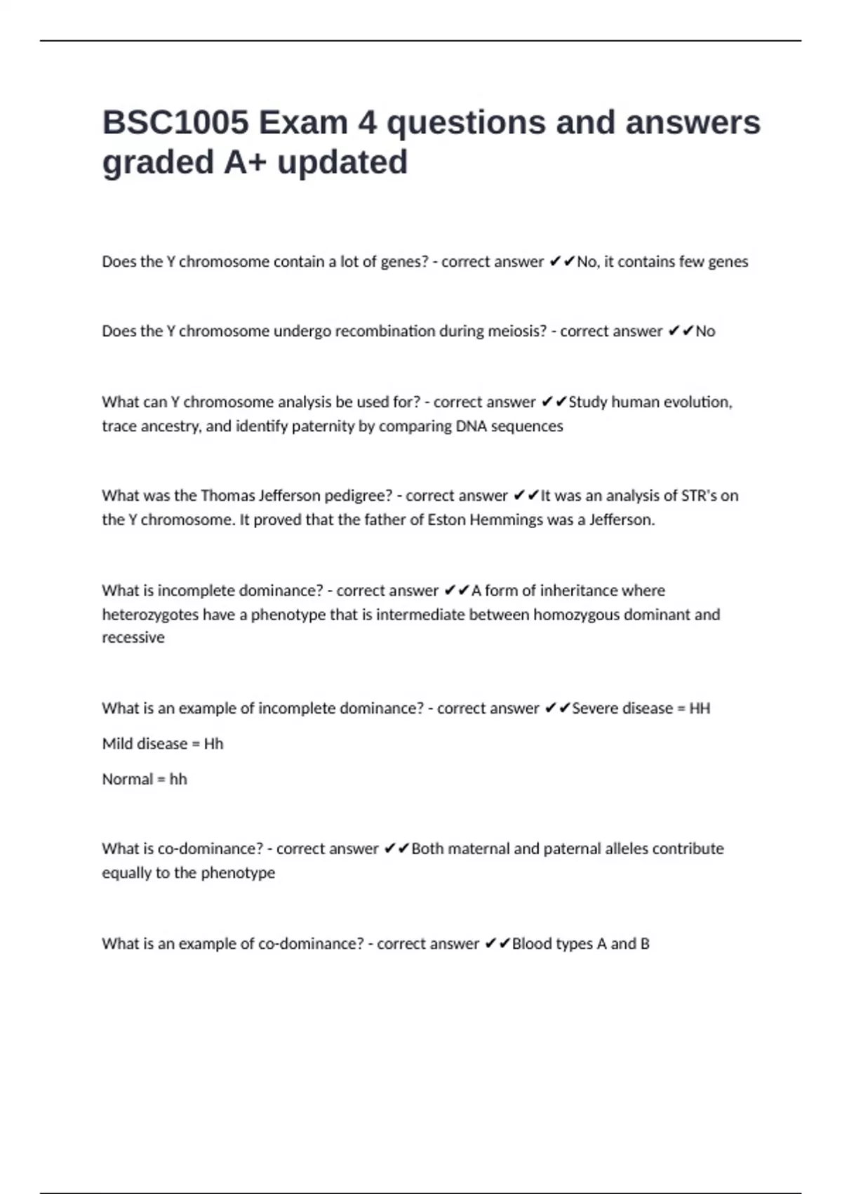 Does the Y chromosome contain a lot of genes? - correct answer ✔✔No, it contains few genes