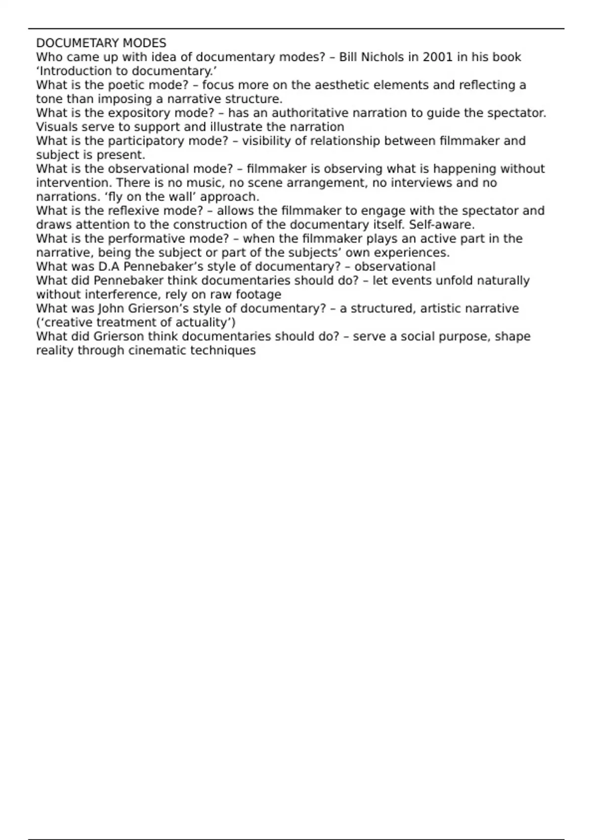 DOCUMETARY MODES