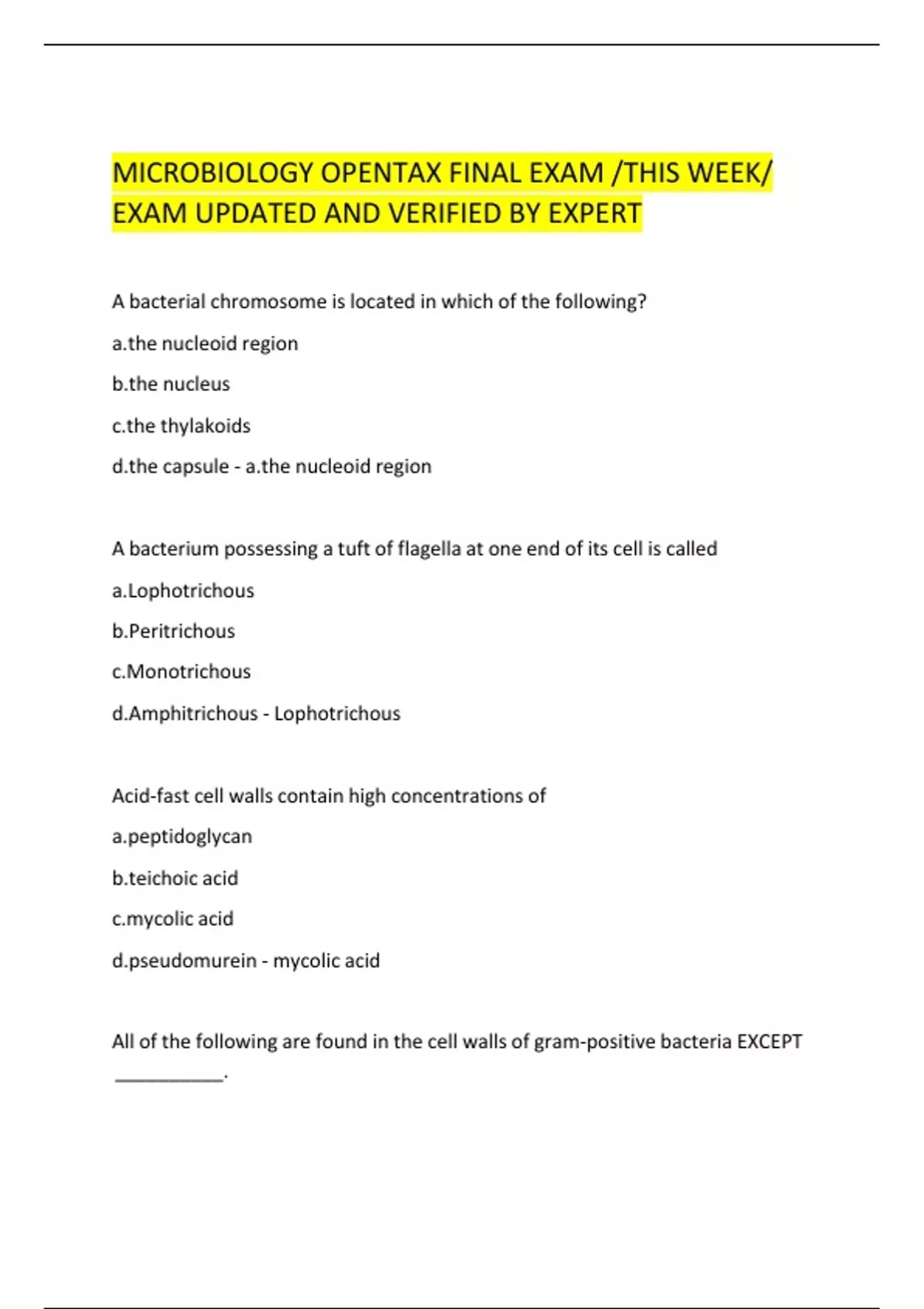 EXAM UPDATED AND VERIFIED BY EXPERT
