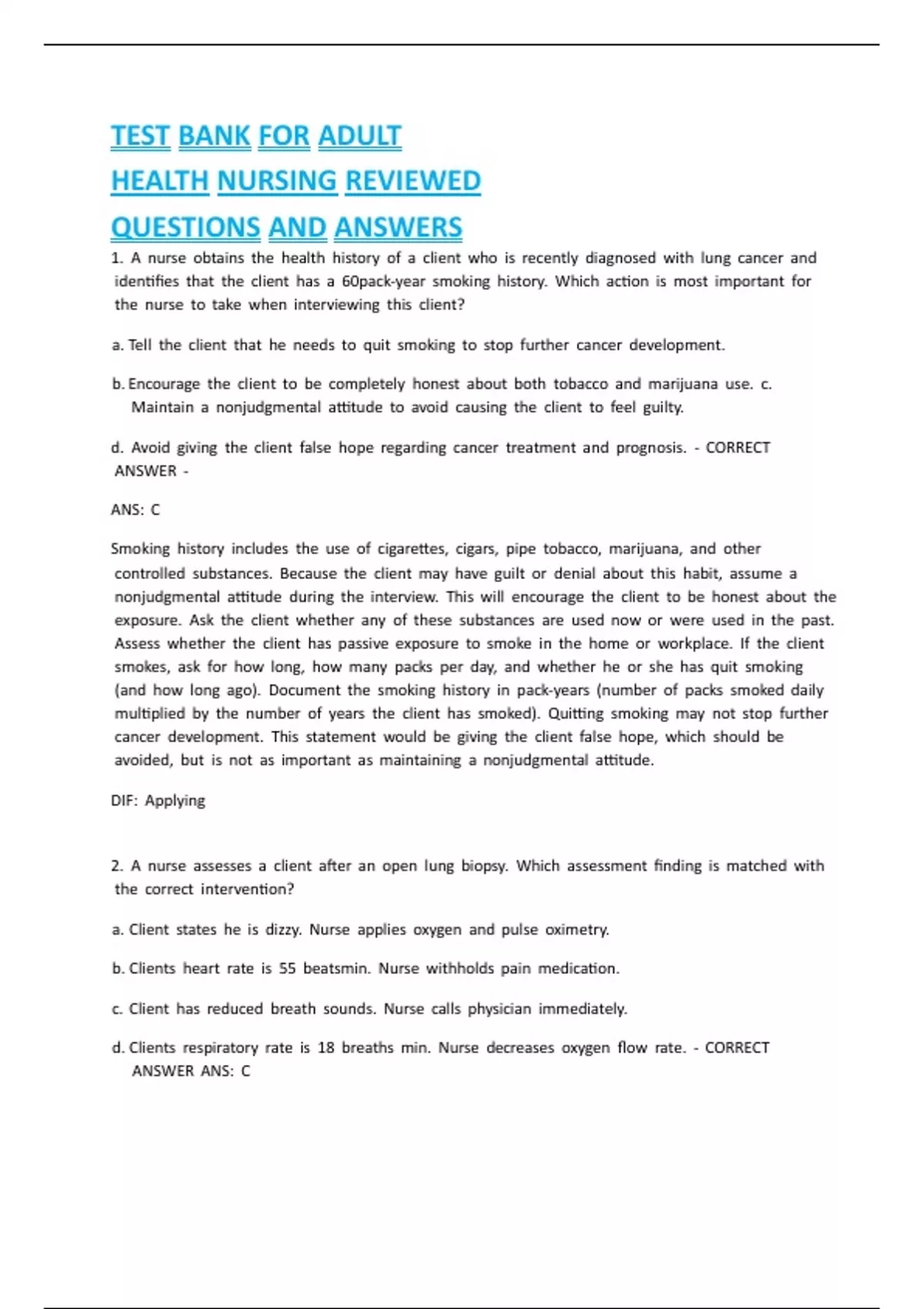 1. xA xnurse xobtains xthe xhealth xhistory xof xa xclient xwho xis xrecently xdiagnosed xwith xlung xcancer xand