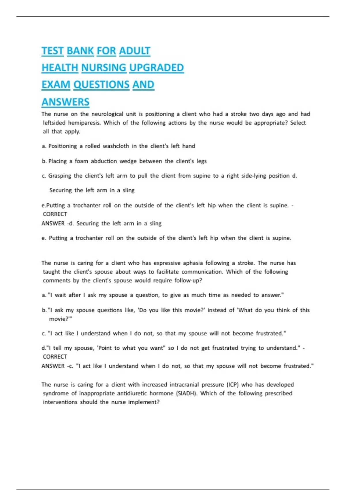 d.Encourage xclient xto xvoid xevery xhour x- xCORRECT xANSWER x-a. xInstruct xthe xclient xon xdaily xmuscle