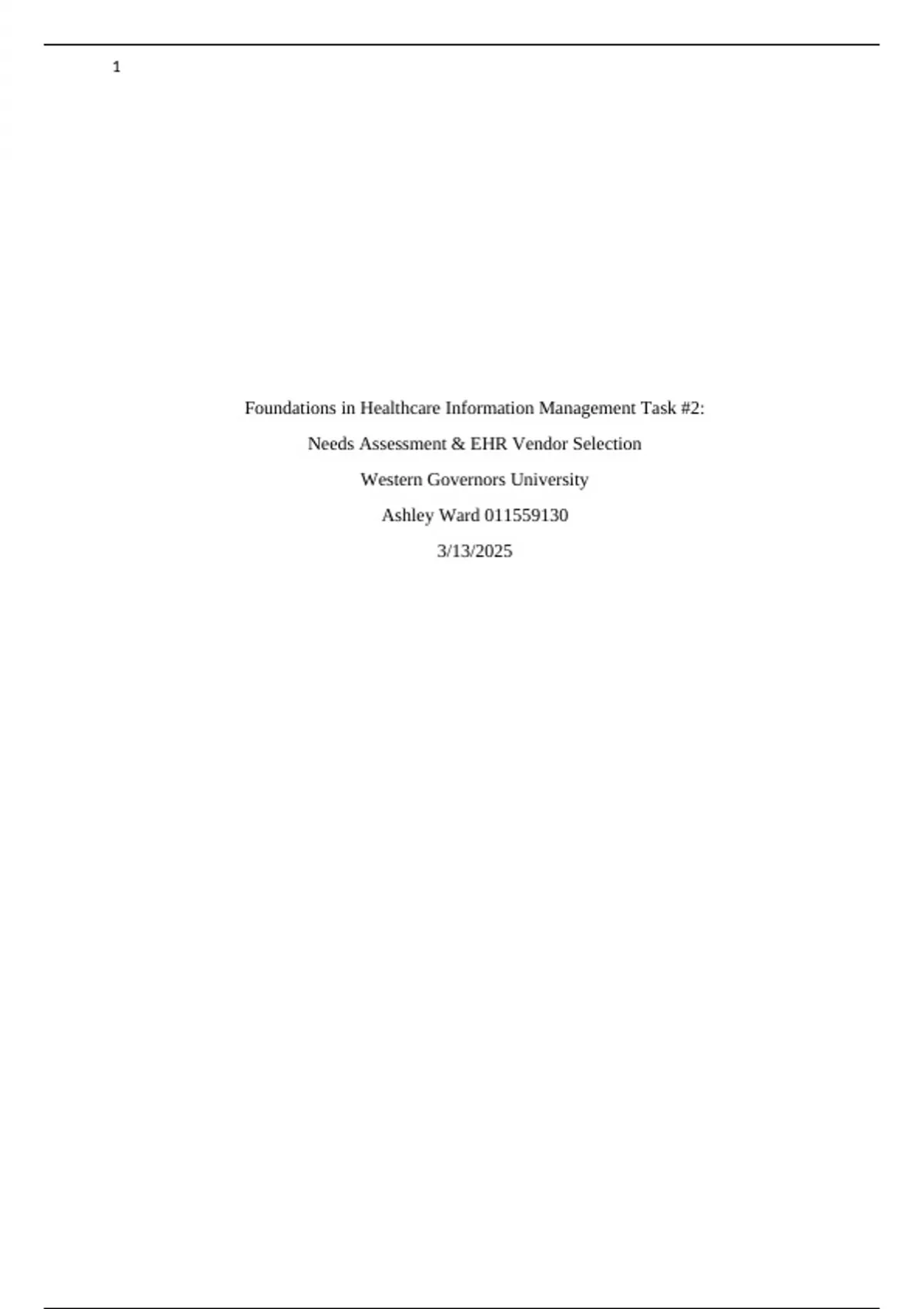 C802 Task 2 | Foundations in Healthcare Information Management Task #2: Needs Assessment & EHR Vendor Selection Western Governors University.