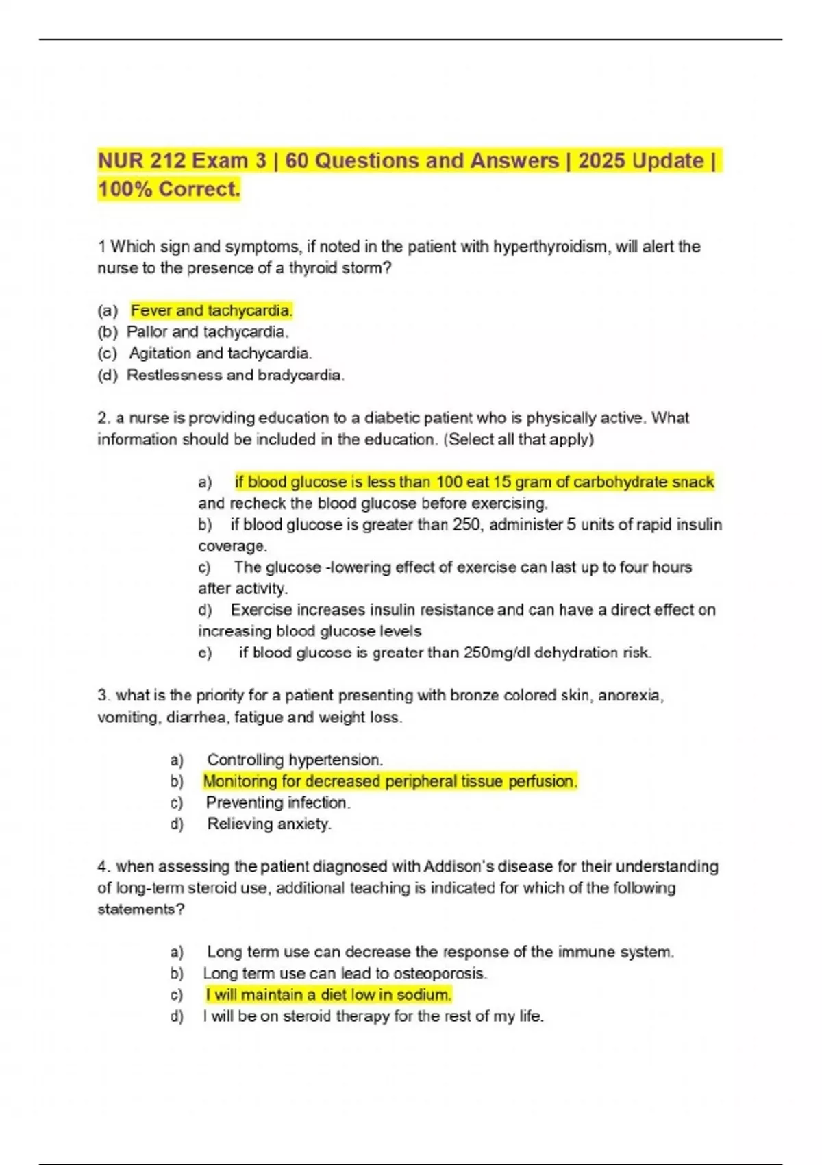 NUR 212 Exam 3 | 60 Questions and Answers | 2025 Update | 100% Correct.