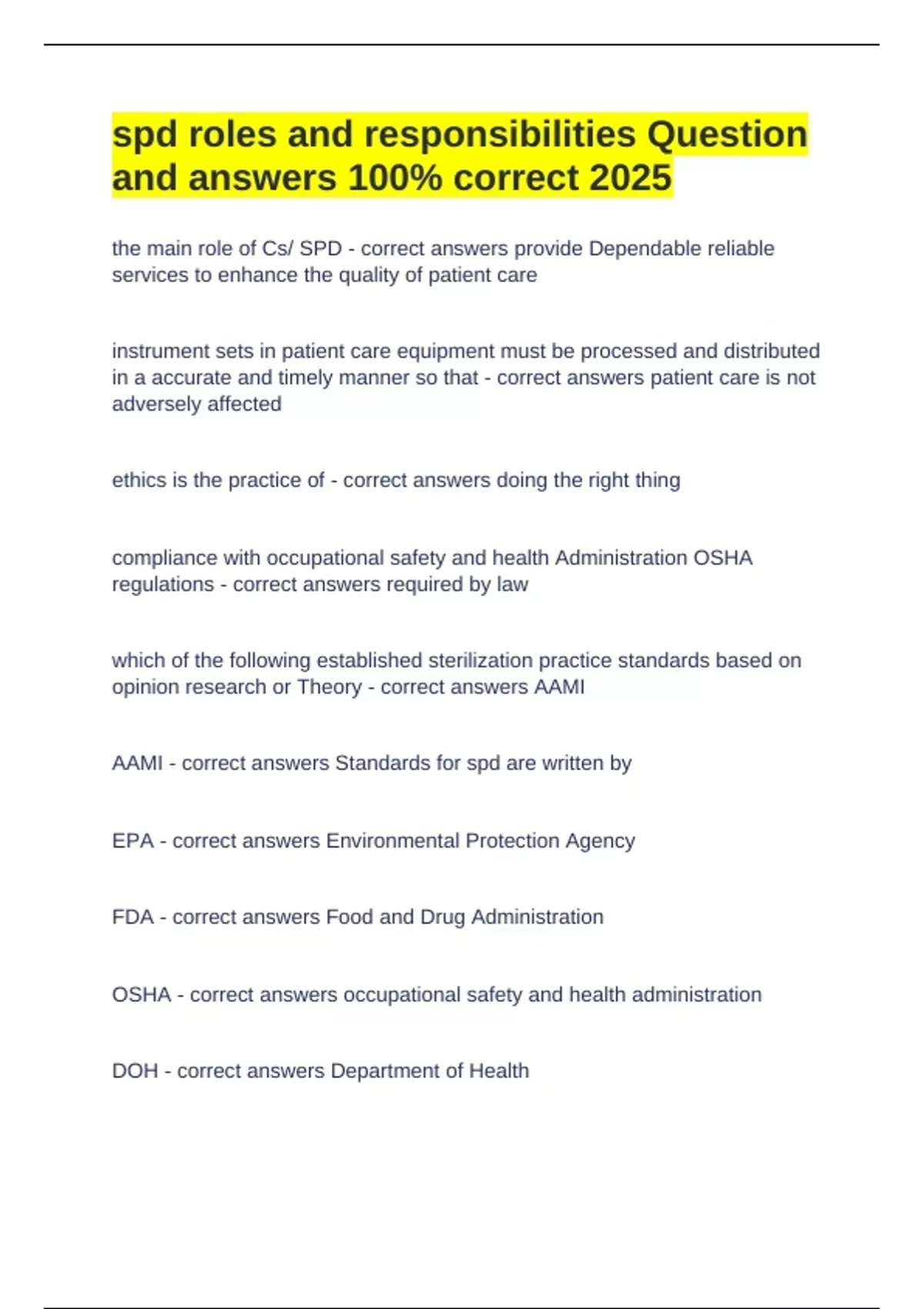 DOH - correct answers Department of Health