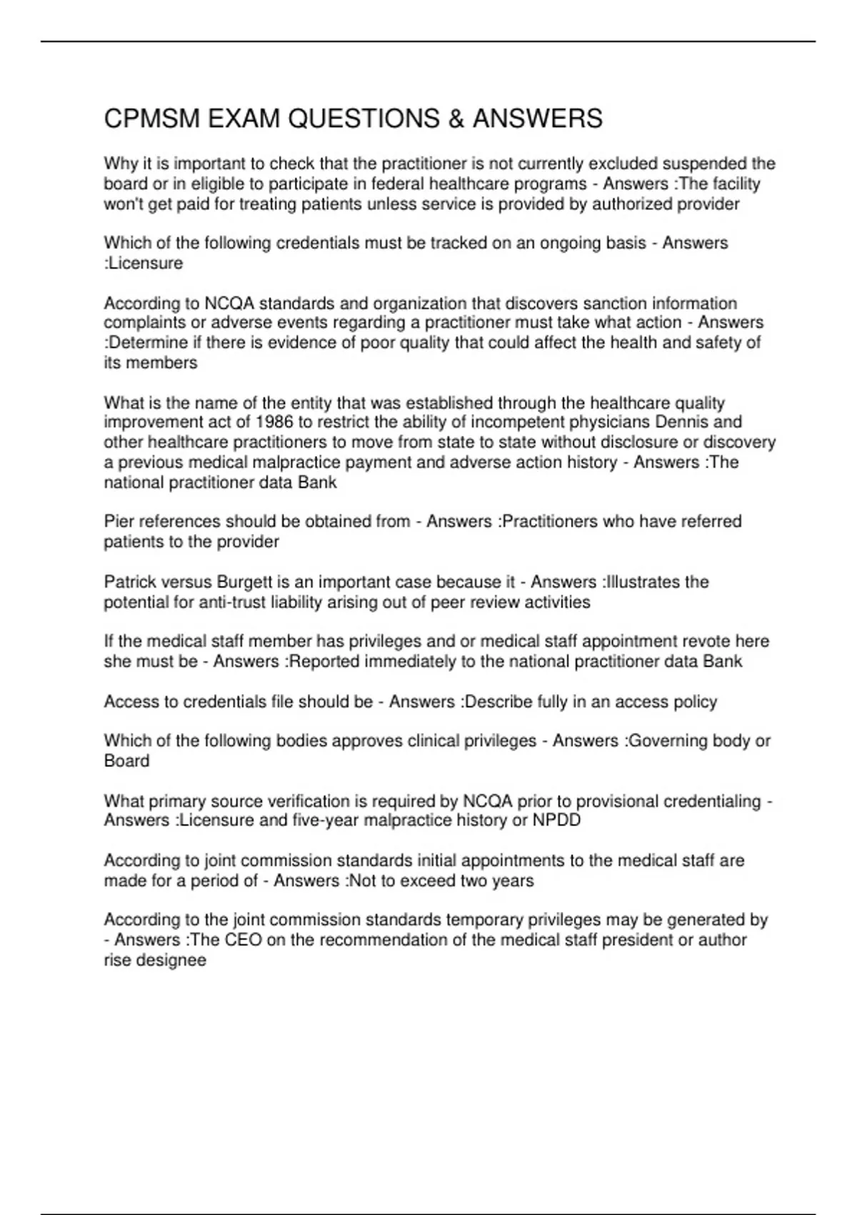 CPMSM EXAM QUESTIONS & ANSWERS