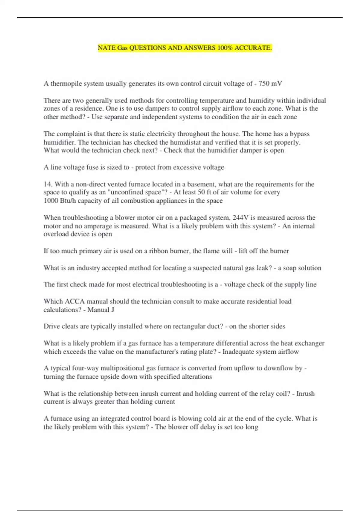 NATE Gas QUESTIONS AND ANSWERS 100% ACCURATE.