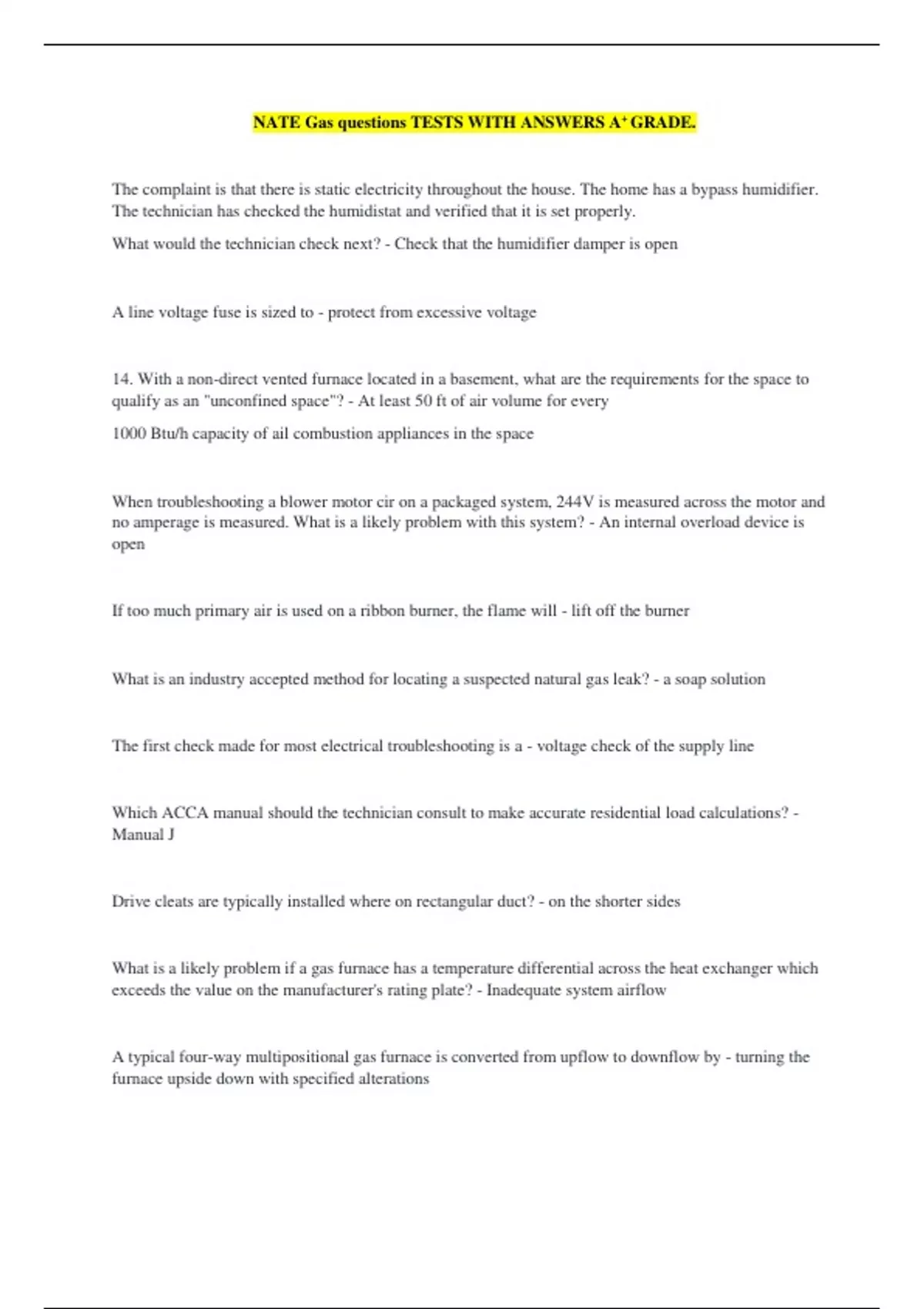 NATE Gas questions TESTS WITH ANSWERS A+ GRADE.