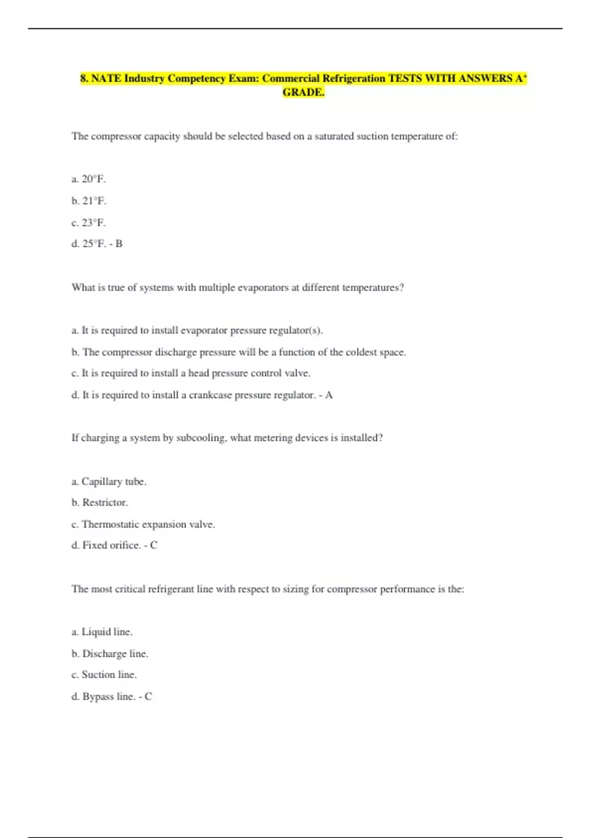 8. NATE Industry Competency Exam: Commercial Refrigeration TESTS WITH ANSWERS A+