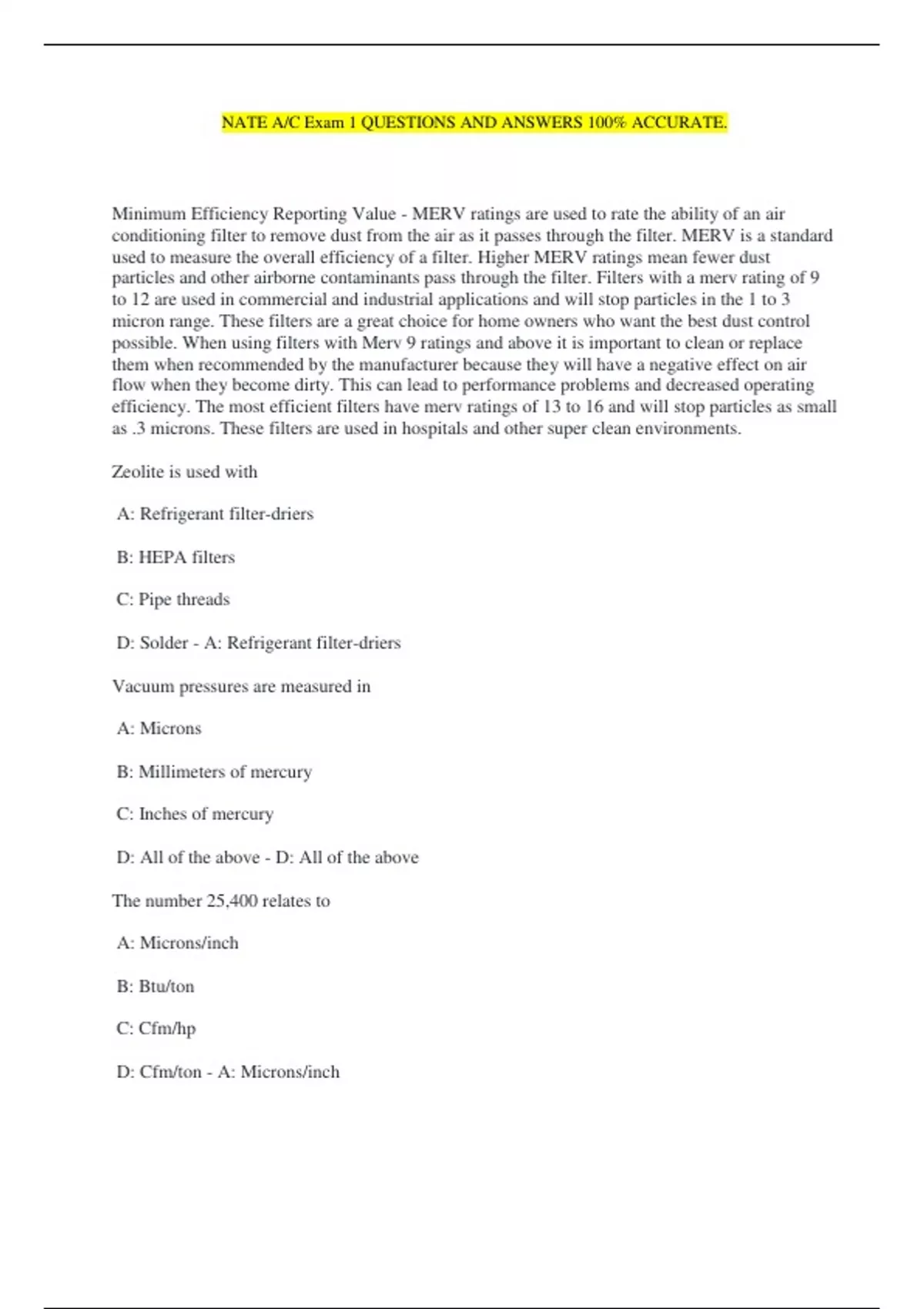 NATE A/C Exam 1 QUESTIONS AND ANSWERS 100% ACCURATE.