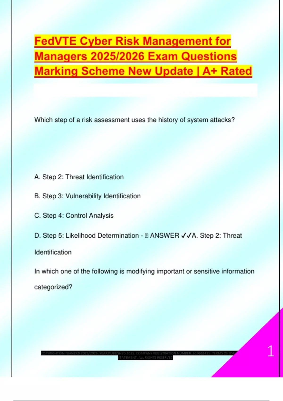 D. Step 5: Likelihood Determination - 🧠 ANSWER ✔✔A. Step 2: Threat