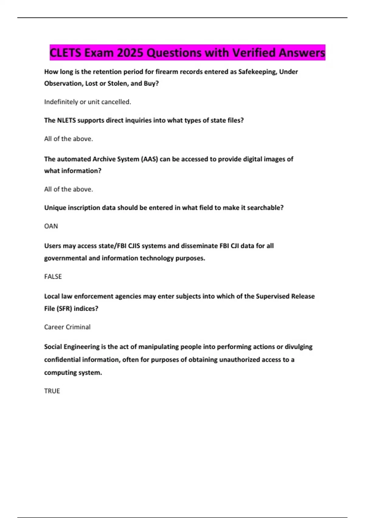 CLETS Exam 2025 Questions with Verified Answers