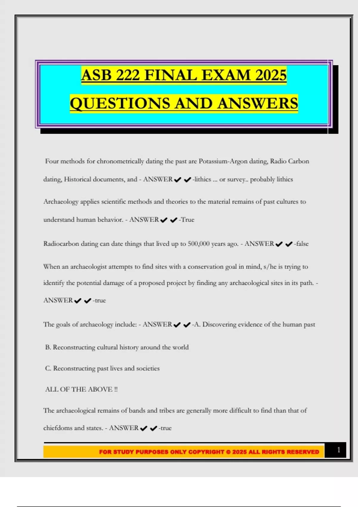 FOR STUDY PURPOSES ONLY COPYRIGHT © 2025 ALL RIGHTS RESERVED 1