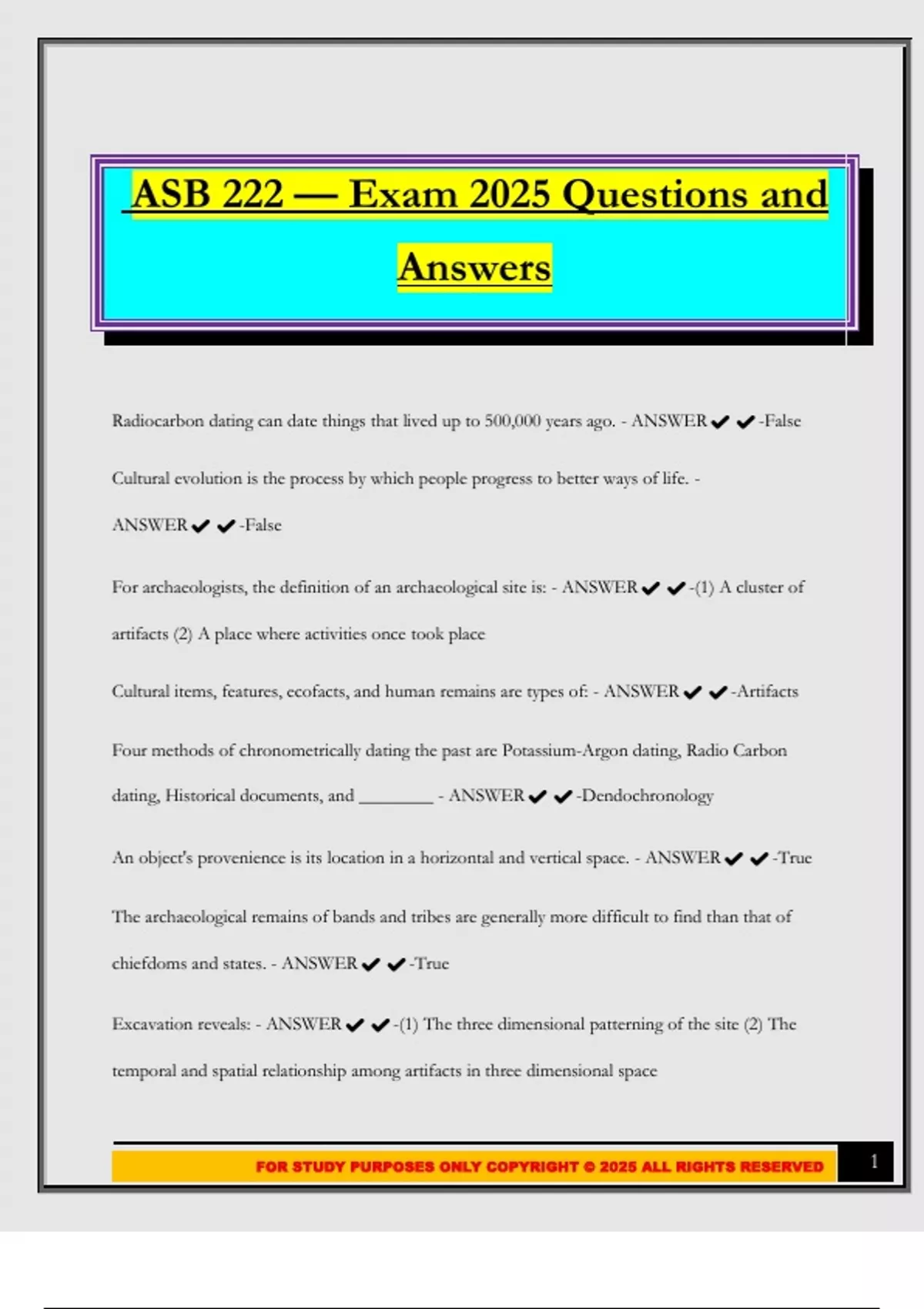FOR STUDY PURPOSES ONLY COPYRIGHT © 2025 ALL RIGHTS RESERVED 1