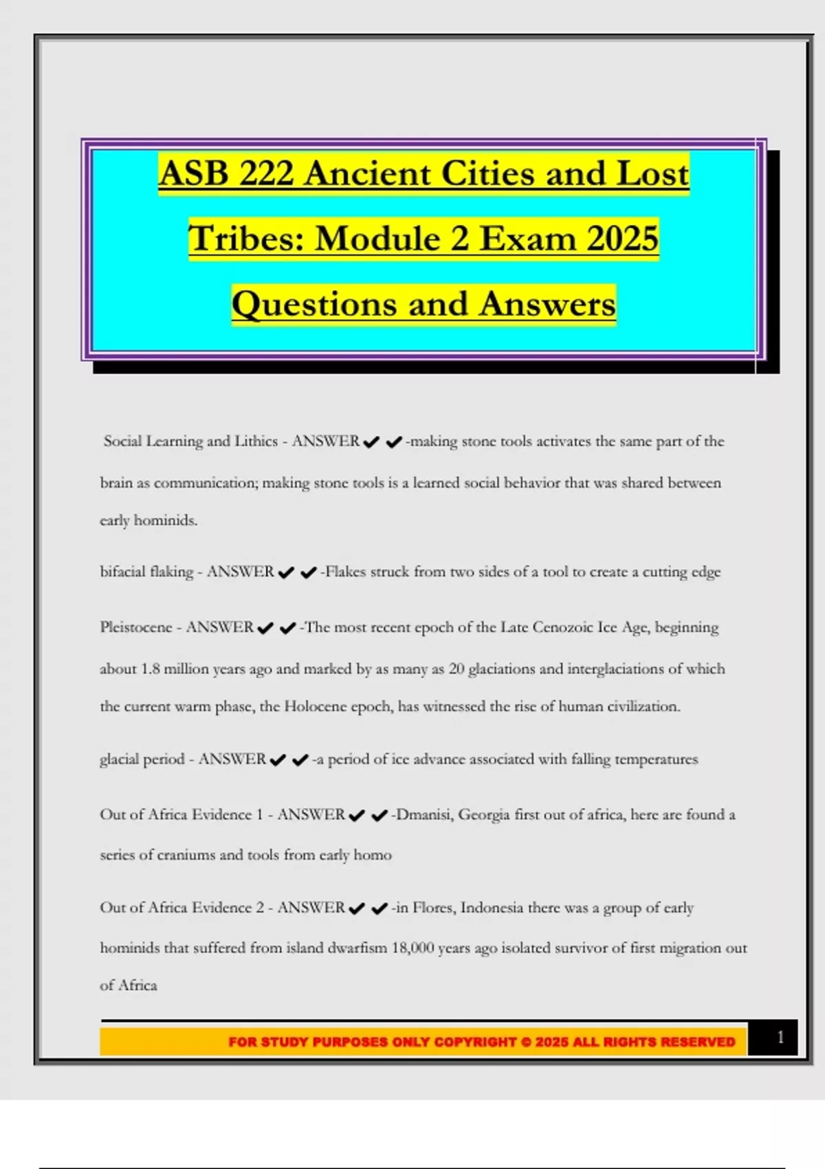 ASB 222 Ancient Cities and Lost Tribes: Module 2 Exam 2025 Questions and Answers