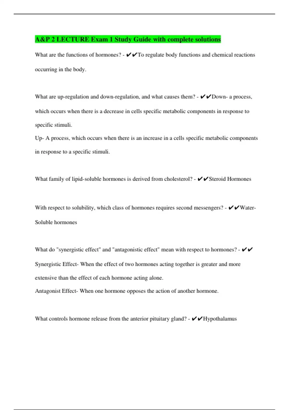 What are the functions of hormones? - ✔✔To regulate body functions and chemical reactions