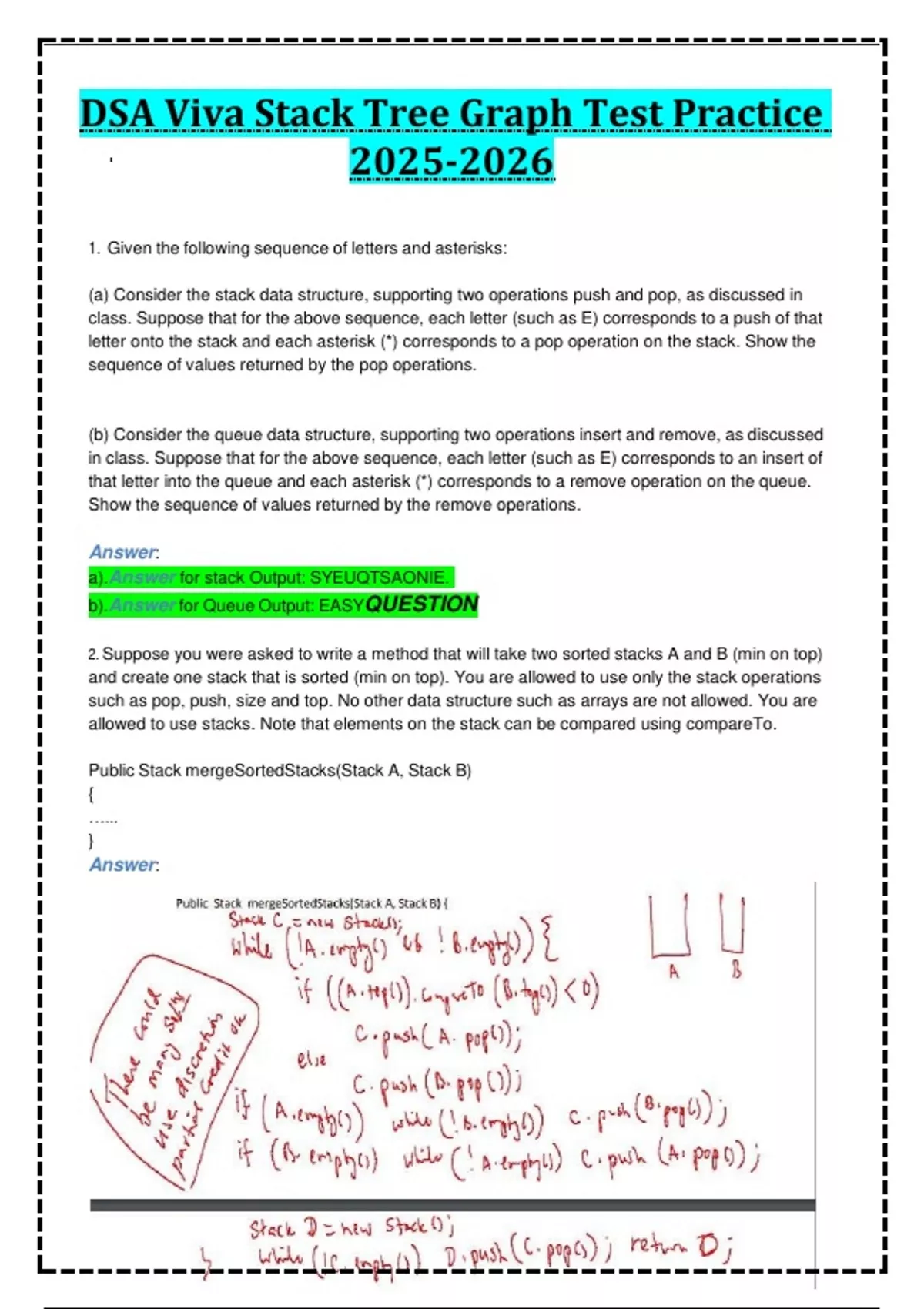 DSA Viva Stack Tree Graph Test Practice