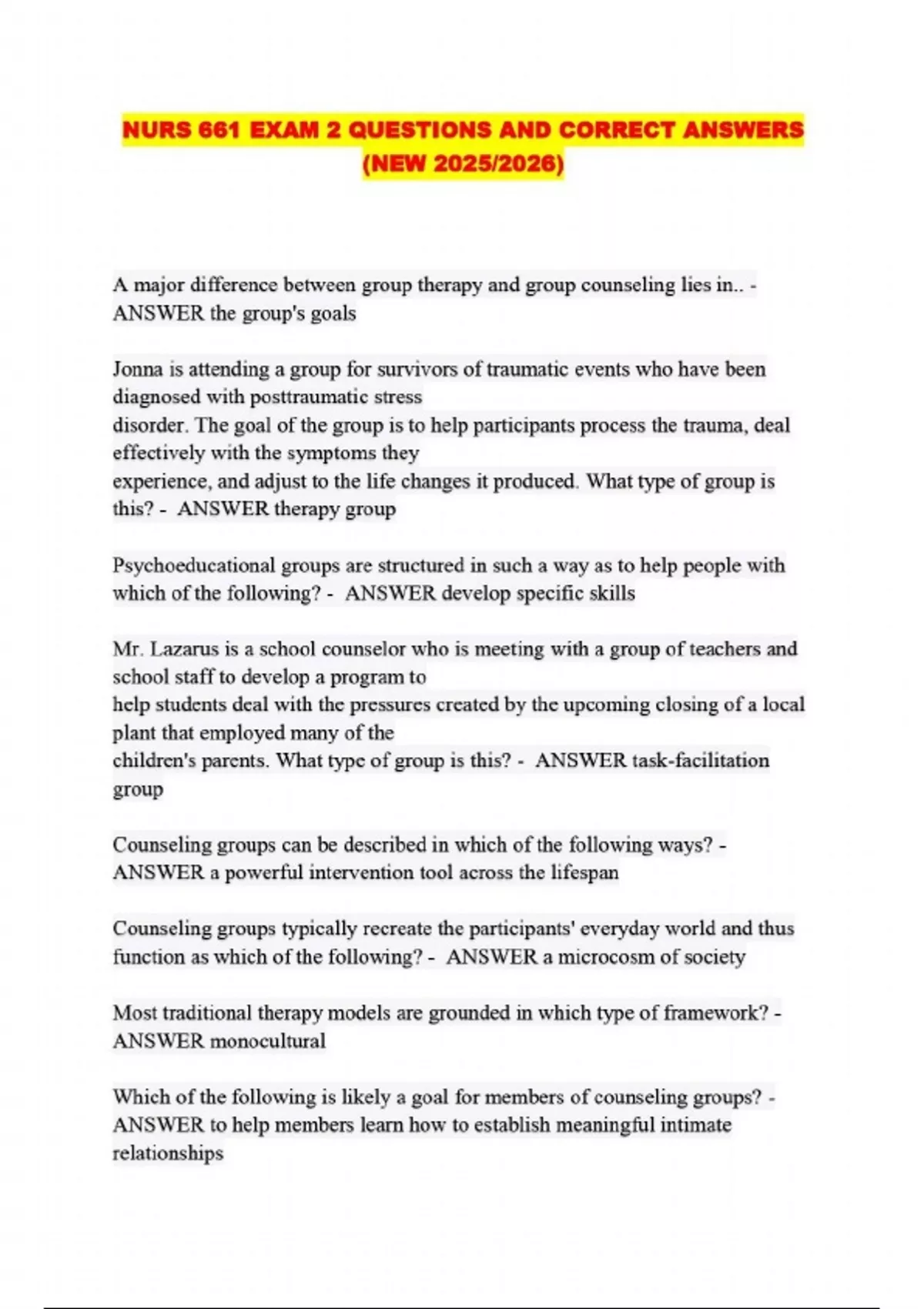 NURS 661 EXAM 2 QUESTIONS AND CORRECT ANSWERS (NEW 2025/2026)....