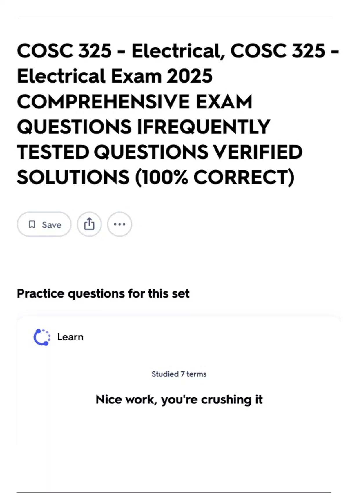 COSC 325 - Electrical, COSC 325 - Electrical Exam 2025 COMPREHENSIVE EXAM QUESTIONS |FREQUENTLY TESTED QUESTIONS VERIFIED SOLUTIONS (100% CORRECT)