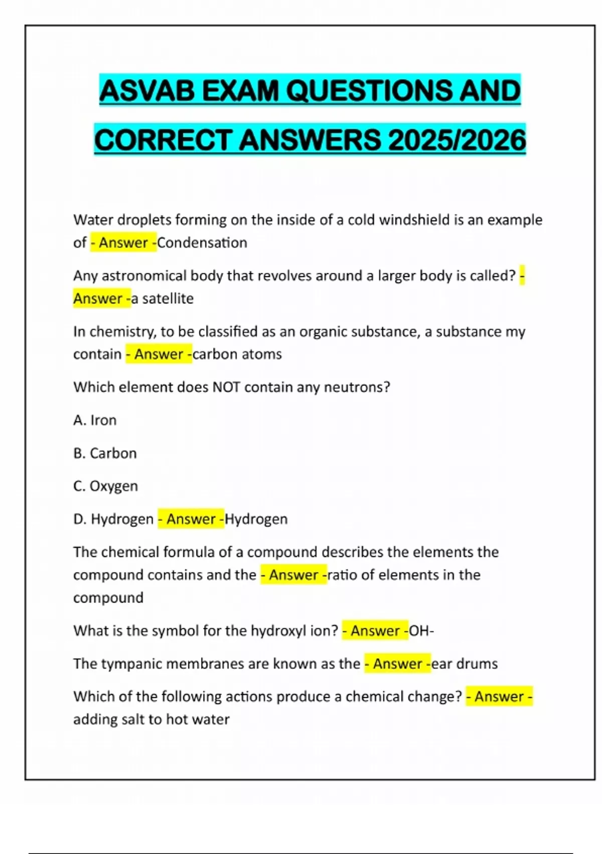 ASVAB EXAM QUESTIONS AND CORRECT ANSWERS 2025/2026