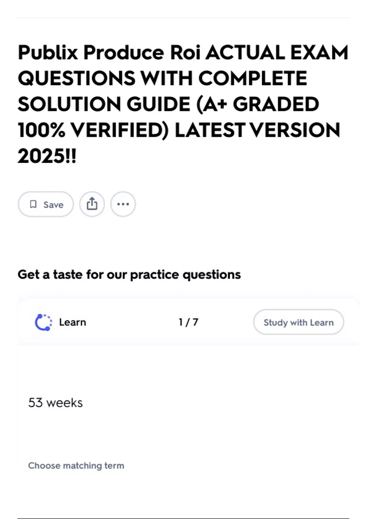 Publix Produce Roi ACTUAL EXAM QUESTIONS WITH COMPLETE SOLUTION GUIDE (A+ GRADED 100% VERIFIED) LATEST VERSION 2025!!