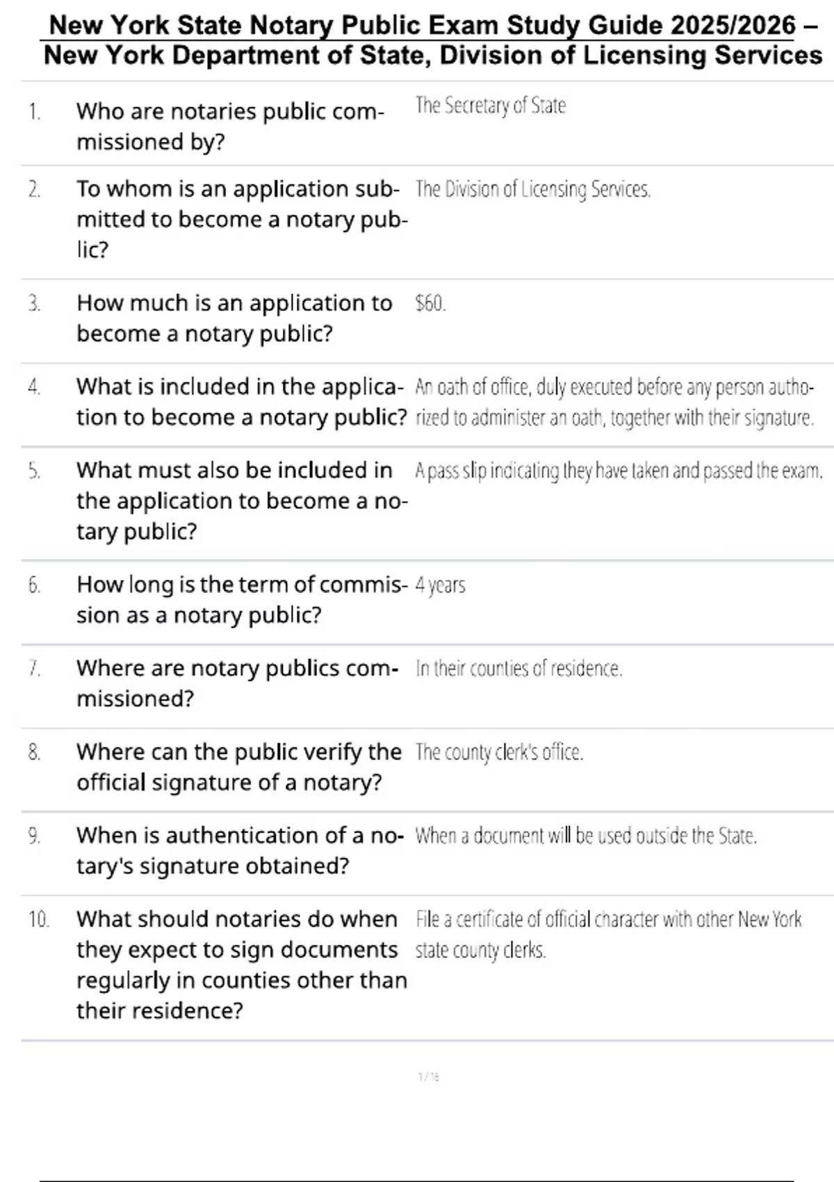 New York State Notary Public Exam Study Guide 2025/2026 – New York Department of State, Division of Licensing Services