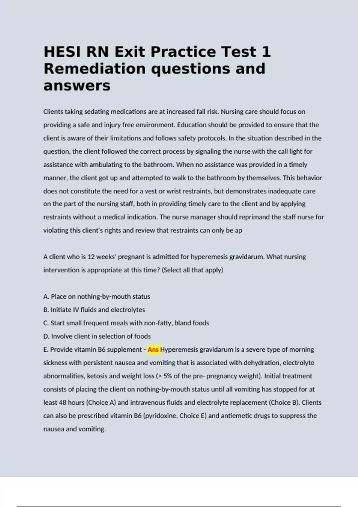E. Provide vitamin B6 supplement - Ans Hyperemesis gravidarum is a severe type of morning