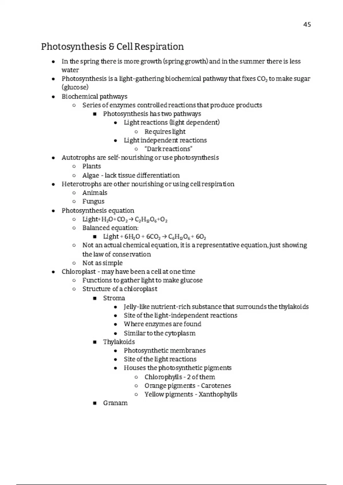 Photosynthesis and Cell Respiration