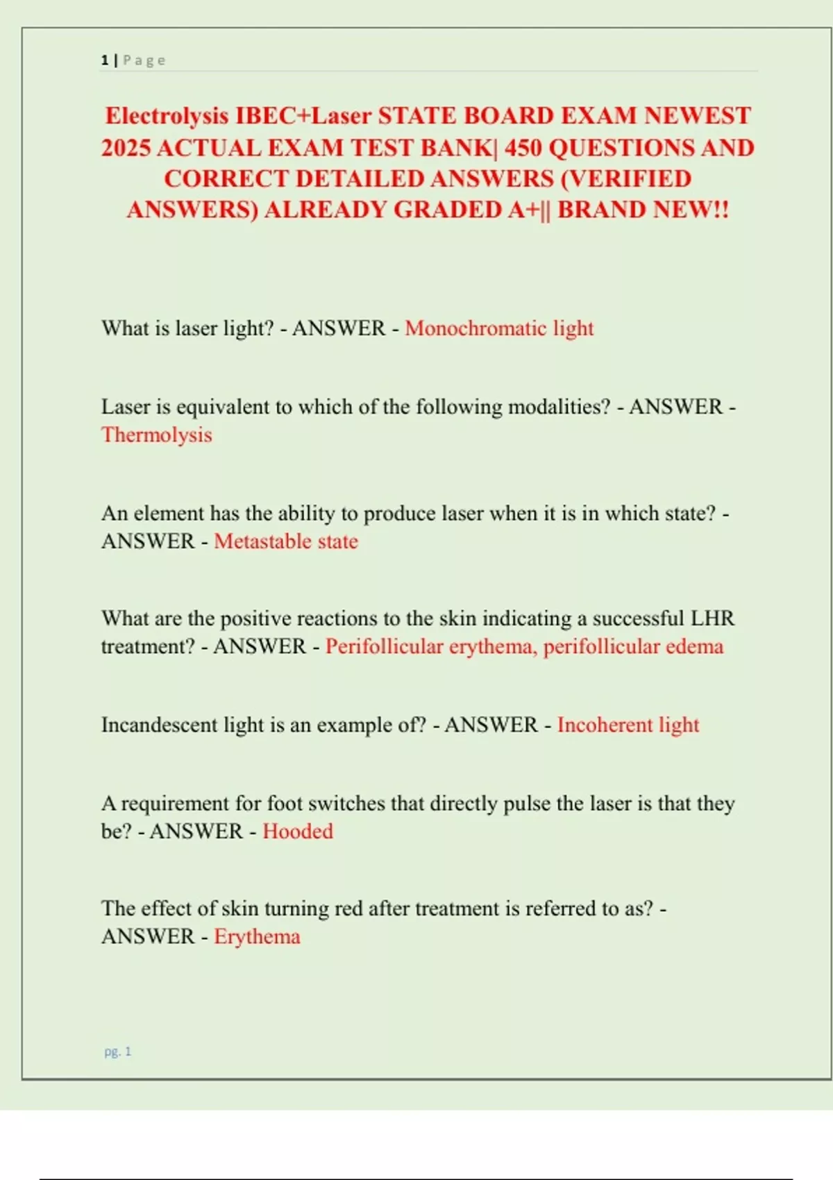 Electrolysis IBEC+Laser STATE BOARD EXAM NEWEST