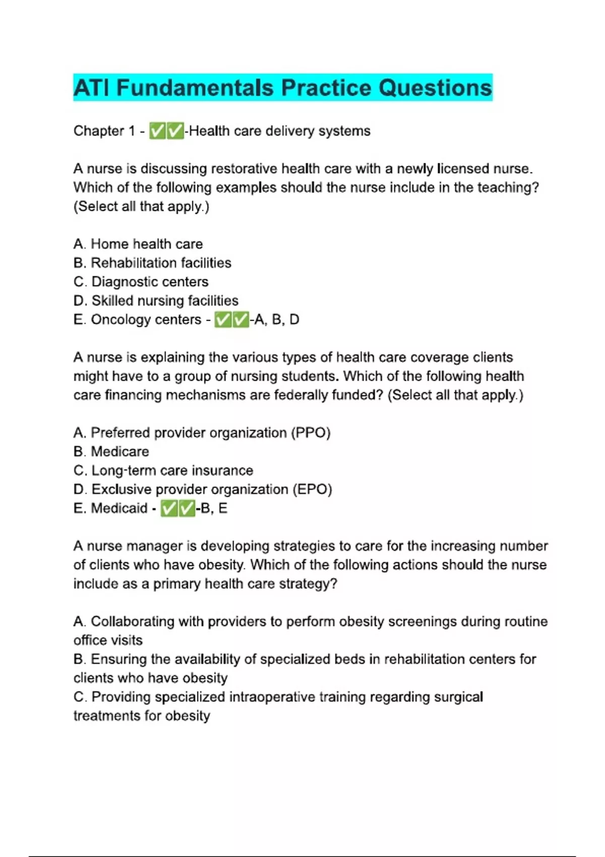ATI Fundamentals Practice Questions exam: {LATEST 2025/ 2026 UPDATE} COMPLETE REAL AND AUTHENTIC EXAM {100% CORRECT} RATED A+!!!!