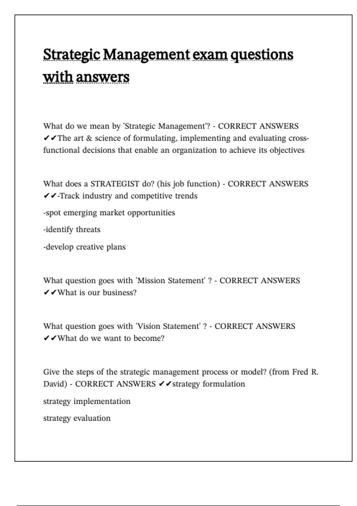 David) - CORRECT ANSWERS ✔✔strategy formulation