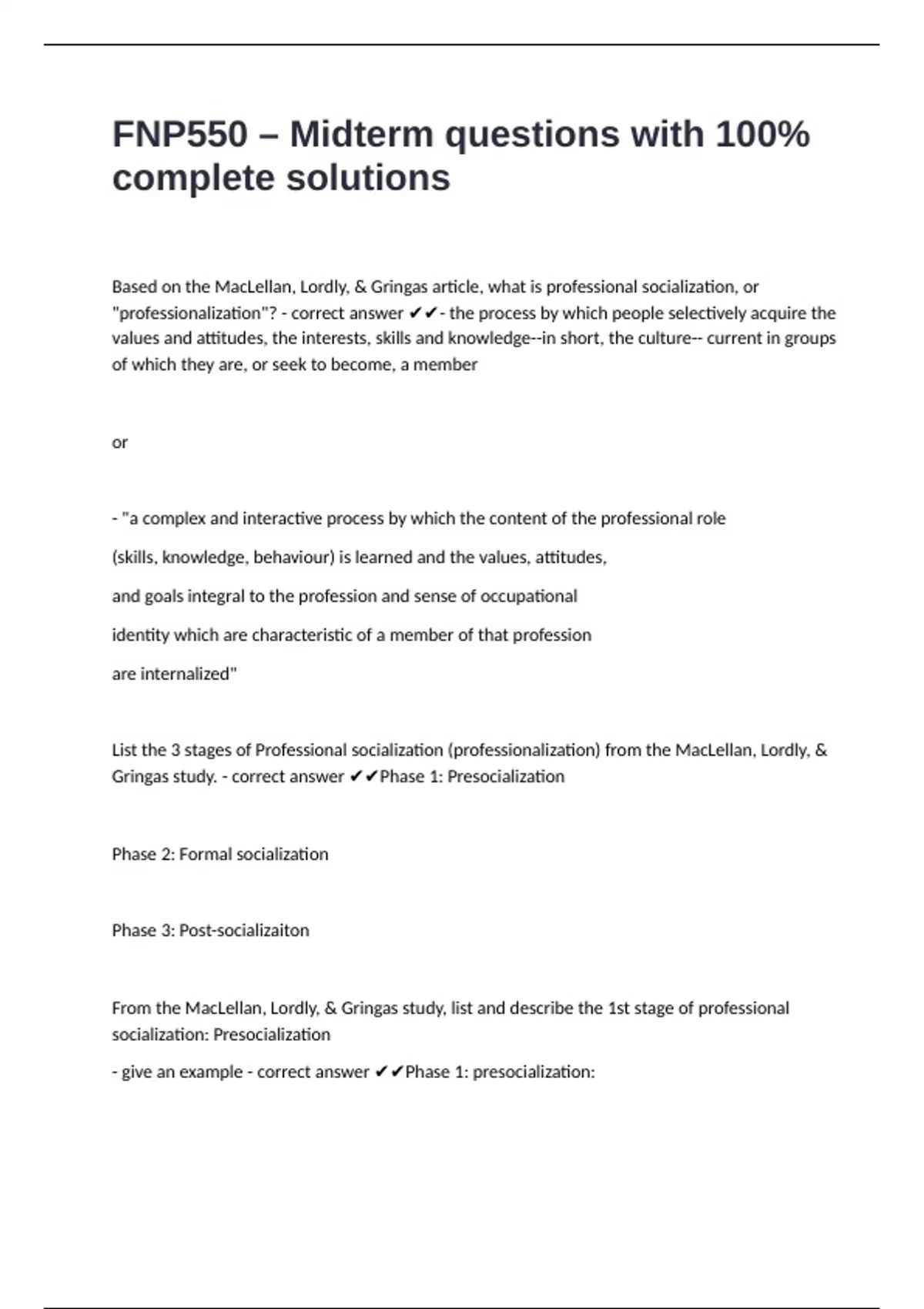 important in the socialization process? - correct answer ✔✔*1. Nurse preceptors*: