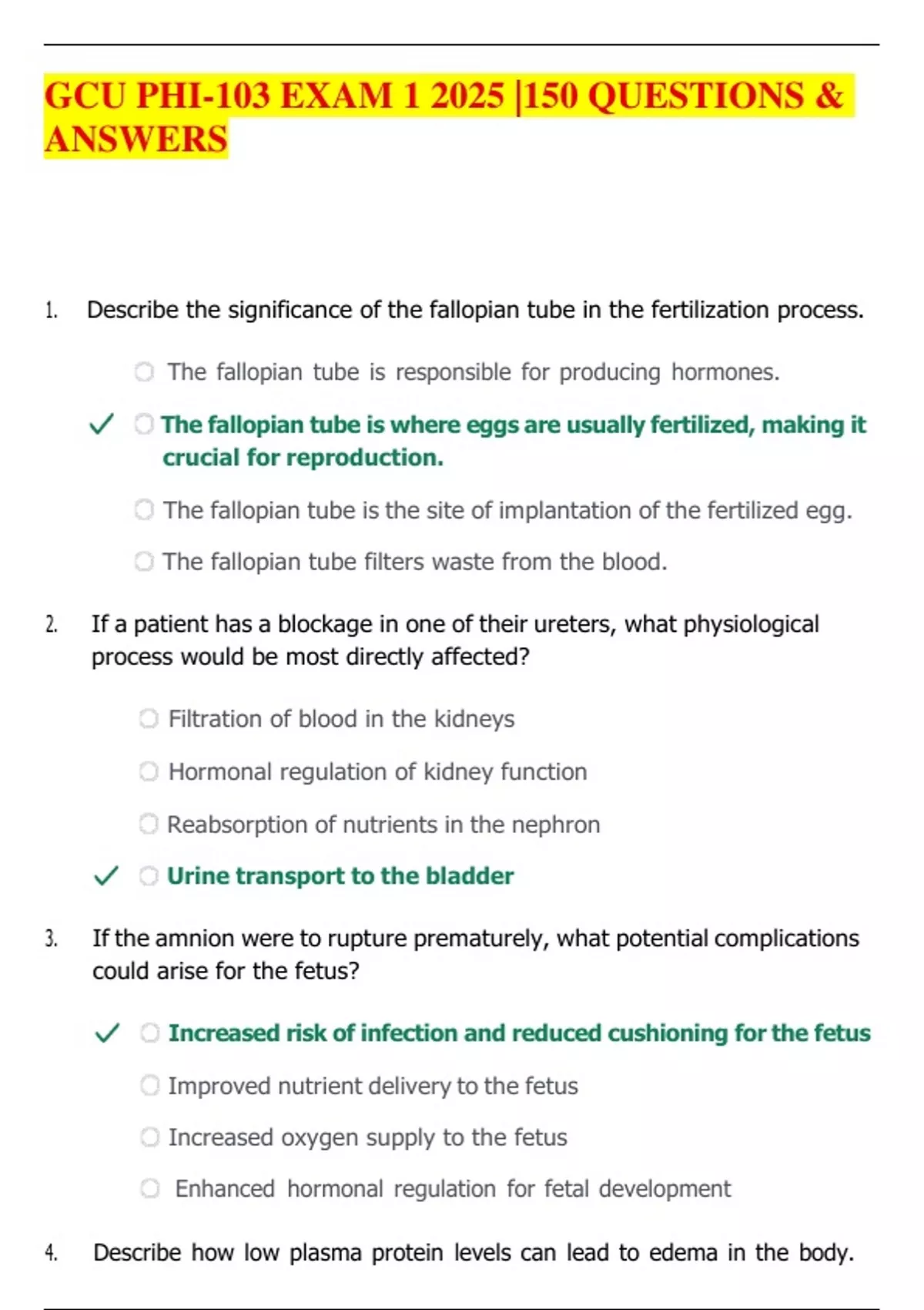 4. Describe how low plasma protein levels can lead to edema in the body.