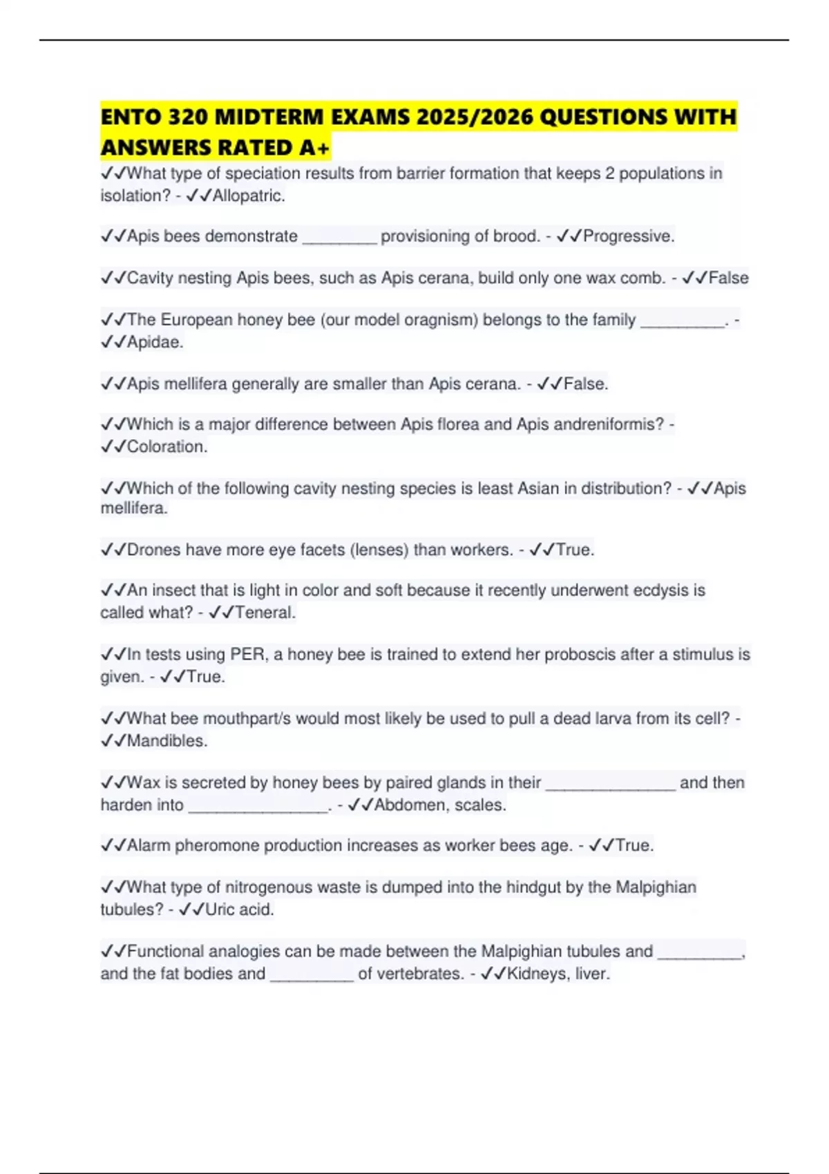 ✔✔Which of the following cavity nesting species is least Asian in distribution? - ✔✔Apis