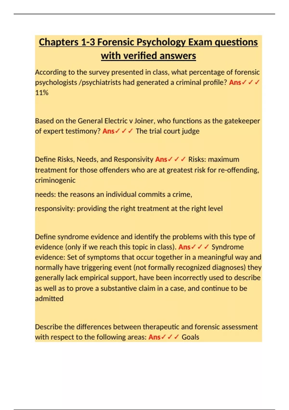 evidence (only if we reach this topic in class). Ans✓✓✓ Syndrome