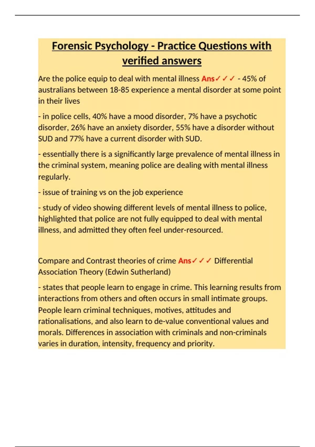 Describe the Role of a Forensic Psychologist Ans✓✓✓ - forensic