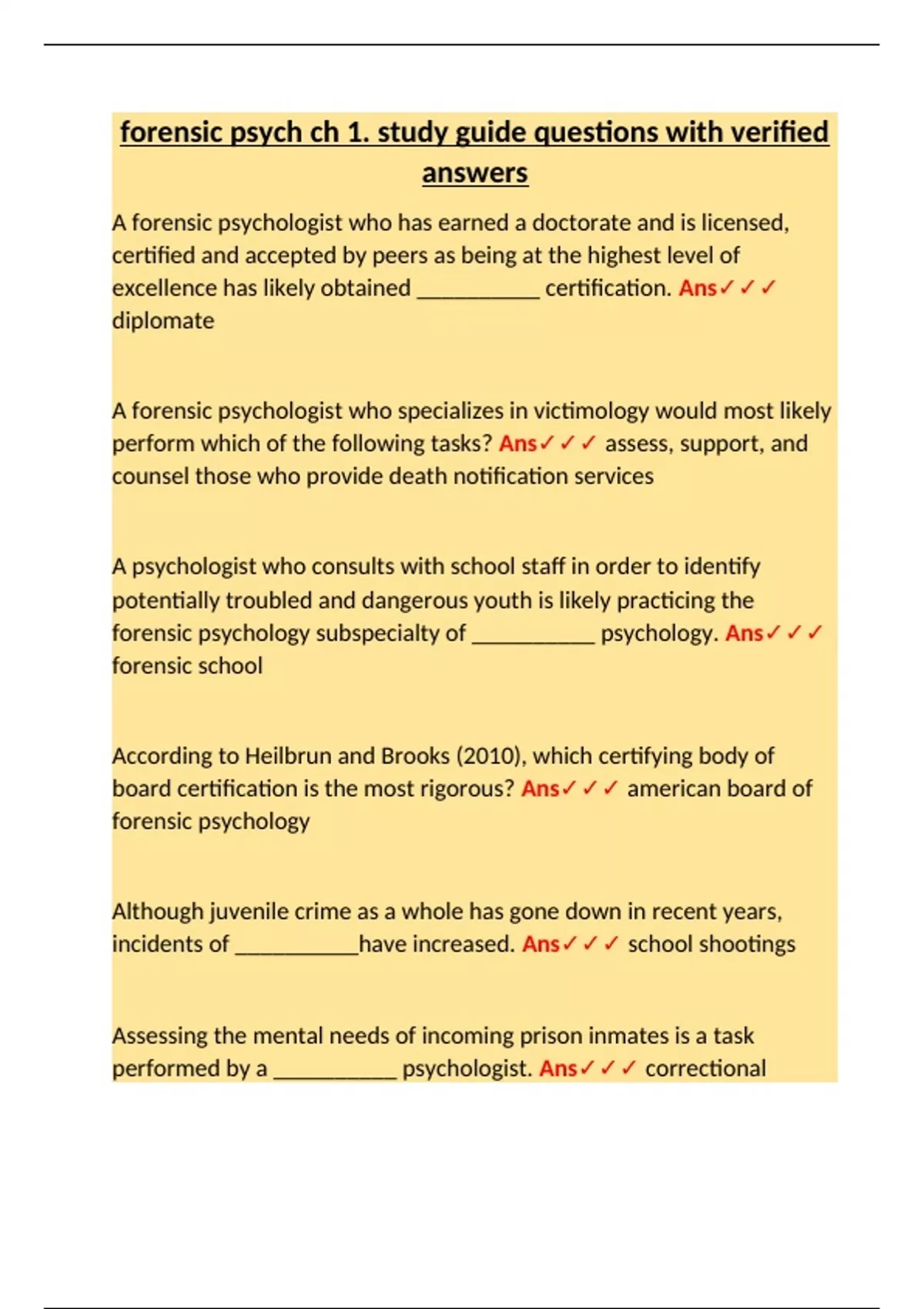 students for which forensic psychology subspecialty? Ans✓✓✓