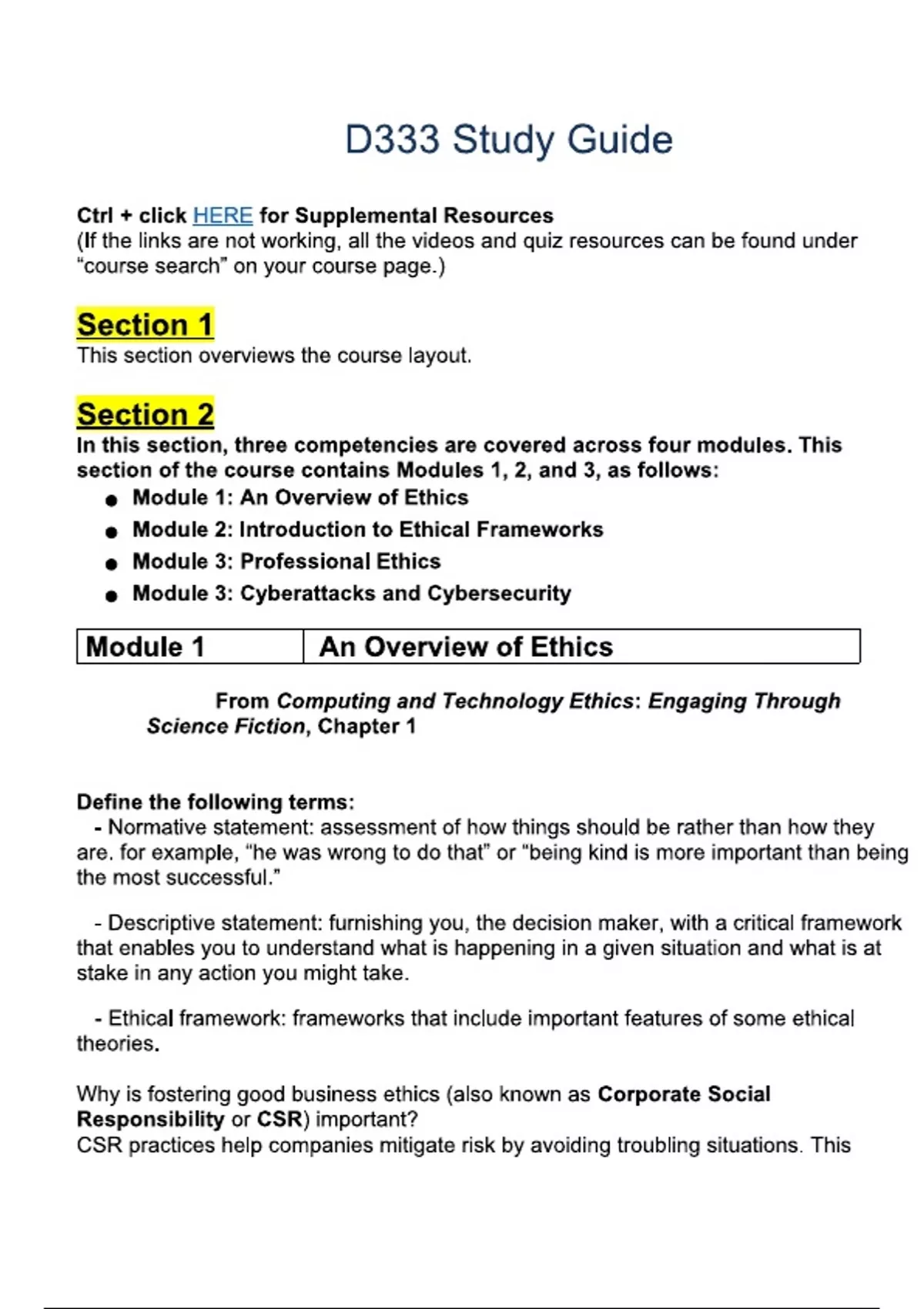 D333 Study Guide V2 2025 COMPLETE WGU D333 Ethics in Technology Study Material.