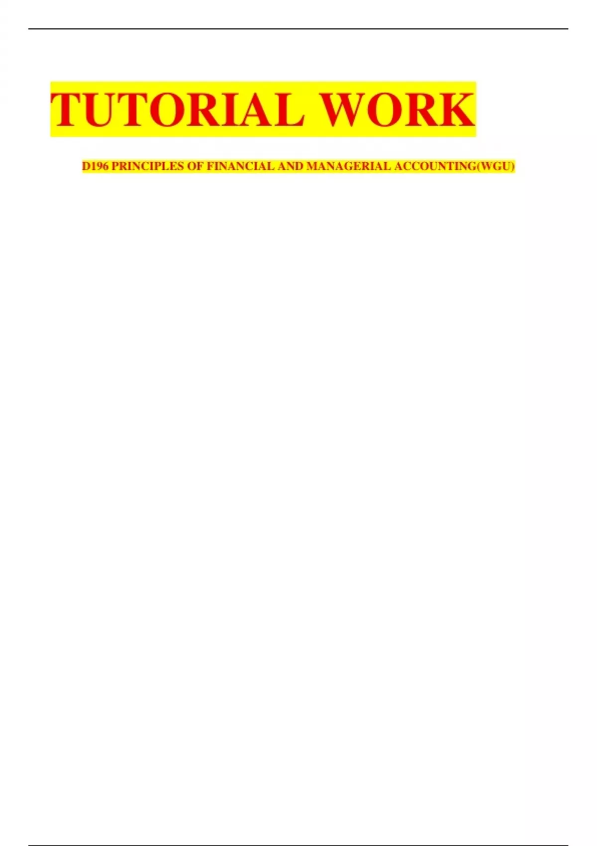 D196 Principles of Financial and Managerial Accounting-TUTORIAL WORK 2025