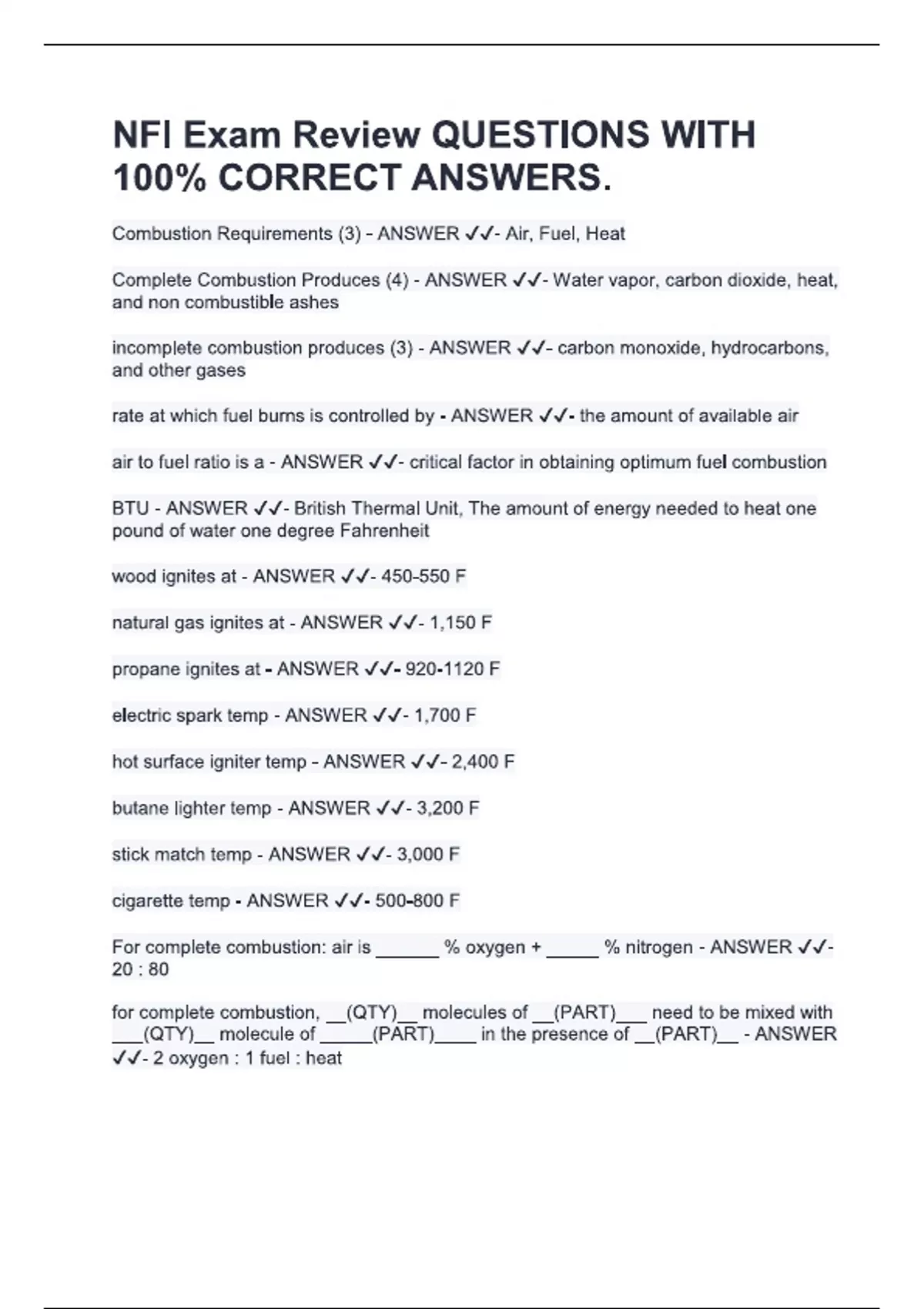 A detailed study guide for the NFI (National Fireplace Institute) certification exam, covering combustion principles, venting systems, fuel types, safety standards, and appliance efficiency. Ideal for hearth professionals preparing for certification.