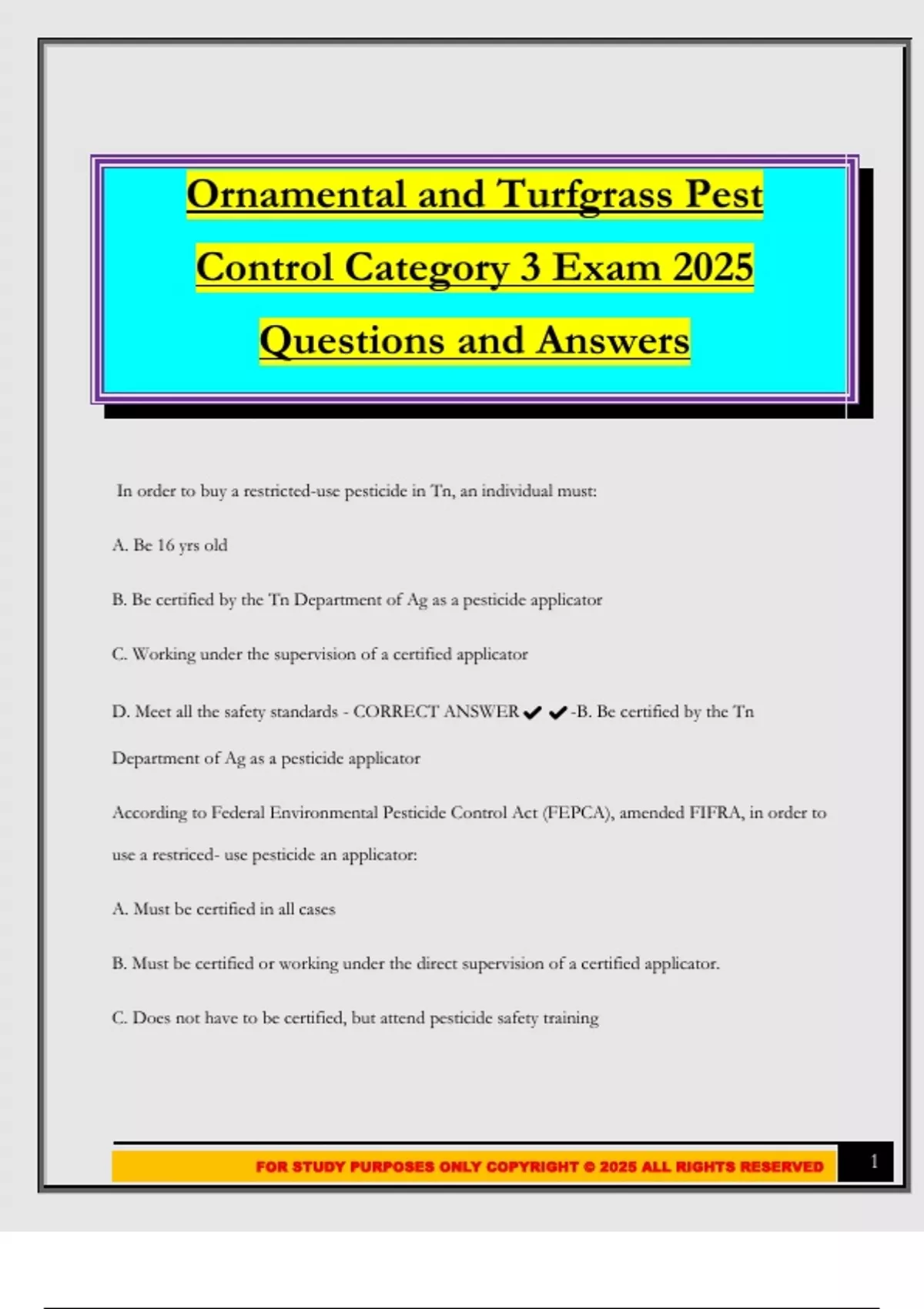 FOR STUDY PURPOSES ONLY COPYRIGHT © 2025 ALL RIGHTS RESERVED 1