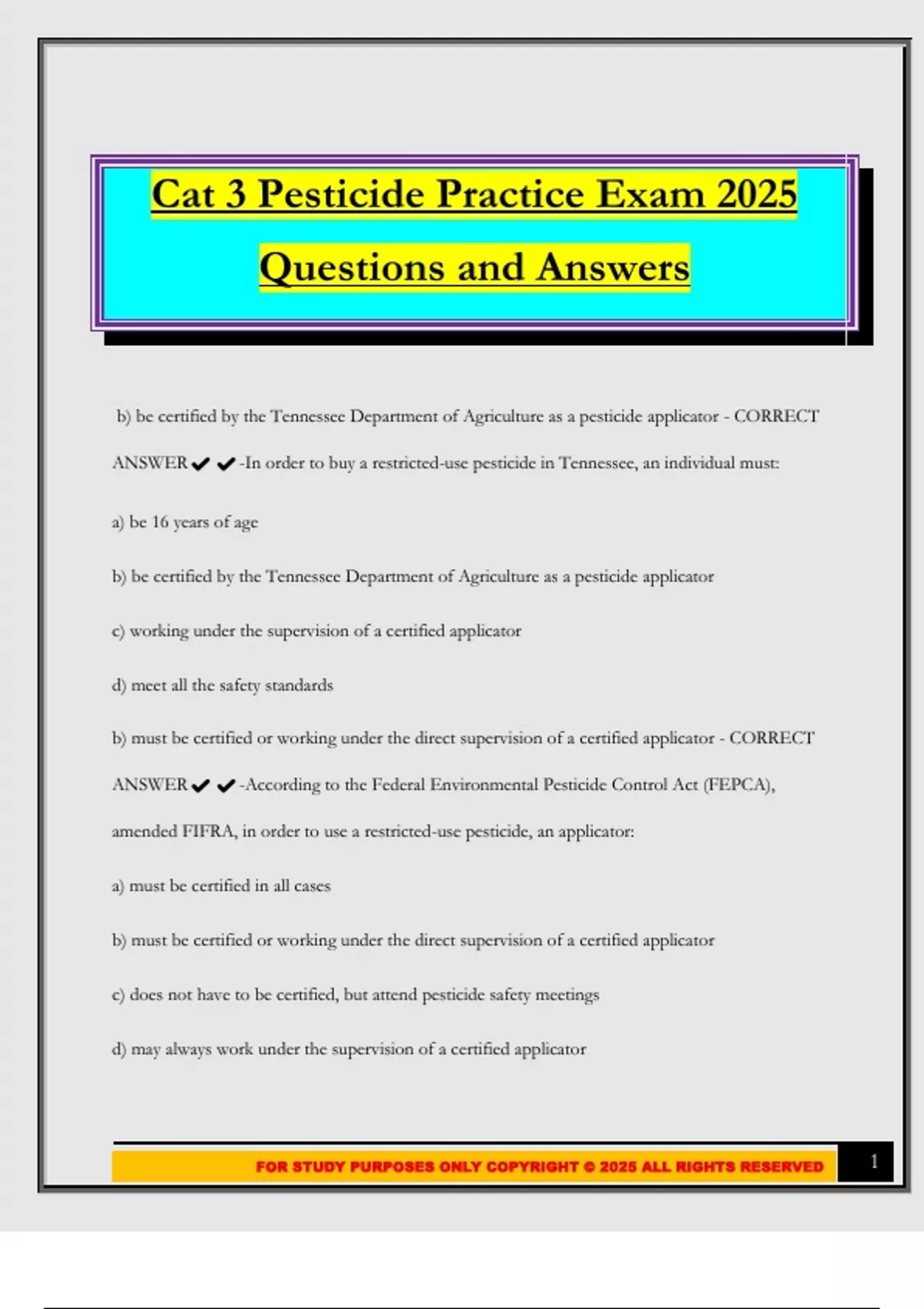 FOR STUDY PURPOSES ONLY COPYRIGHT © 2025 ALL RIGHTS RESERVED 1