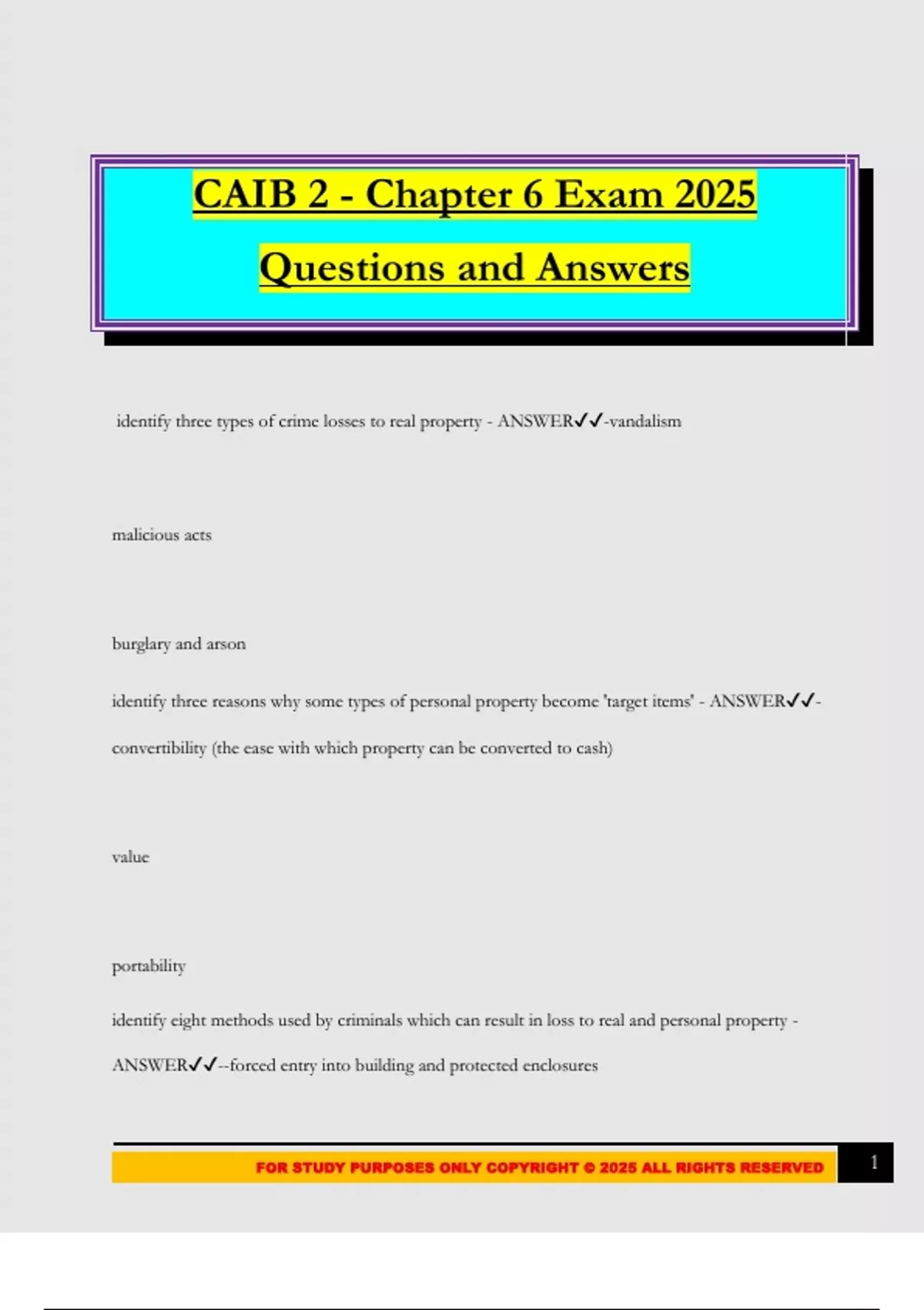 FOR STUDY PURPOSES ONLY COPYRIGHT © 2025 ALL RIGHTS RESERVED 1